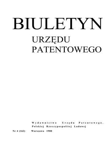 Urząd Patentowy PRL - na podstawie art. 33 i art. 78 ustawy z dnia 19 października 1972 r. o wynalazczości (Dz. U. PRL Nr 43, poz. 272) - dokonuje ogłoszenia w „Biuletynie Urzędu Patentowego" o zgłoszonych