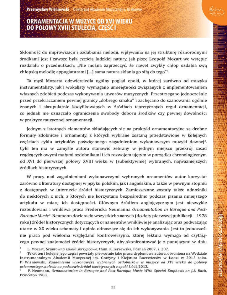 Przemysław Wiśniewski Ornamentacja w muzyce od XVI wieku do