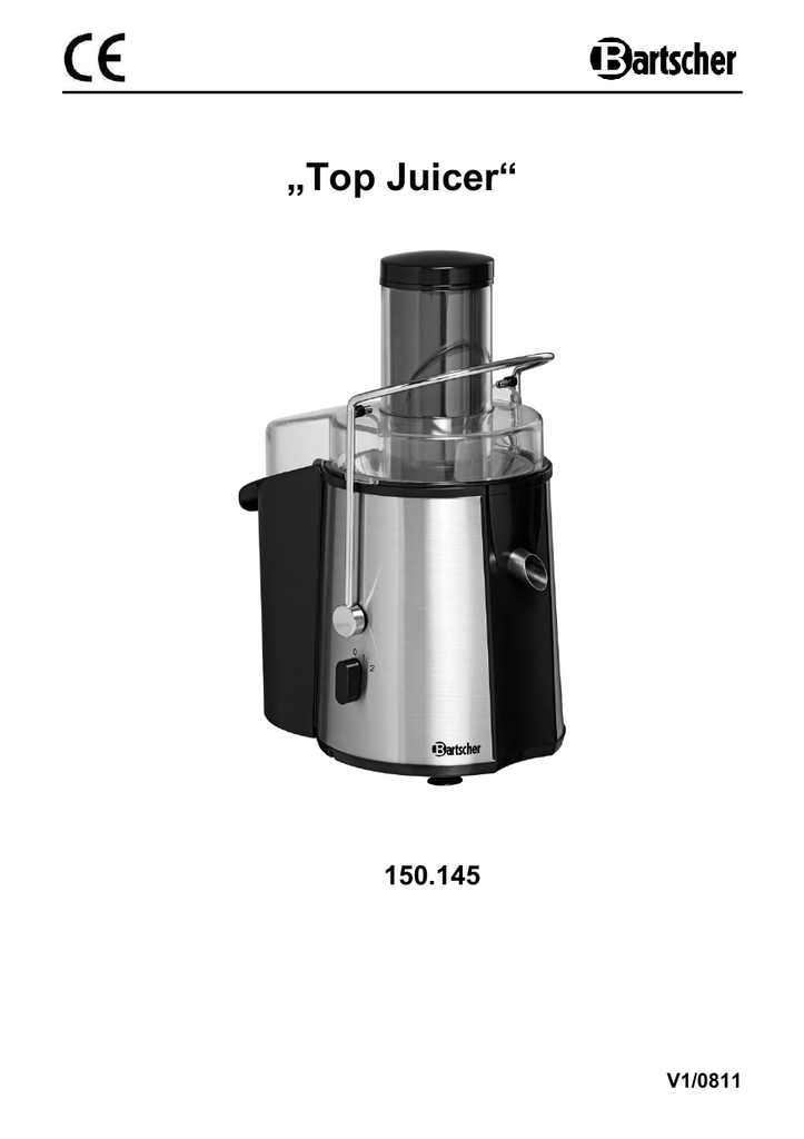 „Top Juicer“ 150.145 V1/0811 PL 1. Informacje ogólne 1.1 Informacje dotyczące instrukcji obsługi 1.2 Wyjaśnienie symboli 1.3 Odpowiedzialność producenta i gwarancja 1.4 Ochrona praw autorskich 1.5 Deklaracja Zgodności 162 162 162 163 163 163 2. Bezpieczeństwo 2.1 Informacje ogólne 2.2 Wskazówki dotyczące bezpieczeństwa przy zastosowaniach urządzenia 2.3 Użytkowanie zgodnie z przeznaczeniem 164 164 164-165 165 3. Transport, opakowanie i magazynowanie 3.1 Kontrola dostawy 3.2 Opakowanie 3.3 Magazynowanie 166 166 166 166 4. Parametry techniczne 4.1 Zestawienie podzespołów urządzenia 4.2 Dane techniczne 4.3 Charakterystyka wyciskarki do soków 167 167 168 168 5. Instalacja i obsługa urządzenia 5.1 Wskazówki dotyczące bezpieczeństwa 5.2 Ustawienie i podłączenie urządzenia 5.3 Obsługa 169 169 169-170 170-173 6. Czyszczenie i konserwacja 6.1 Wskazówki dotyczące bezpieczeństwa 6.2 Czyszczenie 6.3 Wskazówki dotyczące bezpieczeństwa podczas konserwacji 174 174 174-175 175 7. Utylizacja Bartscher GmbH Franz-Kleine-Straße 28 D-33154 Salzkotten Niemcy 176 Tel.: +49 (0) 5258 971-0 Faks: +49 (0) 5258 971-120 - 161 - 1. Informacje ogólne 1.1 Informacje dotyczące instrukcji obsługi Niniejsza instrukcja obsługi zawiera opis instalacji urządzenia, jego obsługi oraz konserwacji i służy jako ważne źródło informacji oraz poradnik. Znajomość i przestrzeganie wszystkich zawartych w niej wskazówek dotyczących bezpieczeństwa i obsługi stanowi warunek bezpiecznej i prawidłowej pracy z urządzeniem. Ponadto należy przestrzegać lokalnych przepisów dotyczących zapobiegania wypadkom oraz zasad BHP. Instrukcja obsługi stanowi integralny element urządzenia i należy ją przechowywać w pobliżu urządzenia, aby osoby instalujące urządzenie, prowadzące prace konserwacyjne i obsługujące lub czyszczące urządzenie miały do niej stały dostęp. 1.2 Wyjaśnienie symboli Ważne wskazówki dotyczące bezpieczeństwa oraz kwestii technicznych oznaczono w niniejszej instrukcji obsługi odpowiednimi symbolami. Wskazówek tych należy bezwzględnie przestrzegać, aby uniknąć ewentualnych wypadków, uszczerbku na życiu i zdrowiu osób oraz szkód rzeczowych. UWAGA! Symbol ten oznacza zagrożenia mogące prowadzić do powstania obrażeń ciała. Należy bezwzględnie i skrupulatnie przestrzegać niniejszych wskazówek BHP, a w odpowiednich sytuacjach zachować szczególną ostrożność. NIEBEZPIECZEŃSTWO! Zagrożenie prądem elektrycznym! Symbol ten zwraca uwagę na zagrożenia prądem elektrycznym. Ignorowanie wskazówek dotyczących bezpieczeństwa stwarza niebezpieczeństwo odniesienia obrażeń ciała lub utraty życia. OSTRZEŻENIE! Tym symbolem oznaczono wskazówki, których ignorowanie może, w konsekwencji, doprowadzić do uszkodzenia urządzenia, jego nieprawidłowego działania lub / i awarii. WSKAZÓWKA! Ten symbol wskazuje na porady oraz informacje istotne dla efektywnej i bezawaryjnej pracy urządzenia. - 162 - 1.3 Odpowiedzialność producenta i gwarancja Wszystkie informacje zawarte w niniejszej instrukcji obsługi zostały zestawione przy uwzględnieniu obowiązujących przepisów, aktualnej wiedzy konstruktorskiej i inżynierskiej oraz naszej wiedzy, a także naszych wieloletnich doświadczeń. Również tłumaczenia instrukcji obsługi zostały wykonane jak najbardziej rzetelnie. Nie możemy jednak przejąć odpowiedzialności za ewentualne błędy w tłumaczeniu. Wersją rozstrzygającą jest załączona instrukcja obsługi w języku niemieckim. W przypadku zamówienia modeli specjalnych lub opcji dodatkowych, oraz w sytuacji zastosowania najnowszych zdobyczy wiedzy technicznej, dostarczone urządzenie może różnić się od objaśnień oraz rysunków zawartych w niniejszej instrukcji obsługi. W razie wątpliwości prosimy o kontakt z producentem. WSKAZÓWKA! Przed rozpoczęciem jakichkolwiek prac, a w szczególności przed uruchomieniem urządzenia, należy dokładnie zapoznać się z treścią niniejszej instrukcji obsługi. Producent nie odpowiada za szkody i uszkodzenia powstałe wskutek nieprzestrzegania informacji zawartych w instrukcji obsługi. Instrukcję obsługi należy przechowywać bezpośrednio przy urządzeniu; ponadto musi być ona dostępna dla wszystkich osób pracujących z urządzeniem. Zastrzegamy sobie prawo do wprowadzania zmian technicznych w produkcie, służących poprawie właściwości użytkowych urządzenia oraz jego ulepszaniu. 1.4 Ochrona praw autorskich Niniejsza instrukcja obsługi oraz zawarte w niej teksty, rysunki, zdjęcia i inne elementy podlegają ochronie prawem autorskim. Bez uzyskania pisemnej zgody producenta, zabrania się powielania treści instrukcji obsługi w jakiejkolwiek formie i w jakikolwiek sposób (także fragmentów), oraz wykorzystywania lub / i przekazywania jej zawartości osobom trzecim. Naruszenia powyższego skutkują obowiązkiem wypłaty odszkodowania. Zastrzegamy sobie prawo do dochodzenia dalszych roszczeń. WSKAZÓWKA! Dane, teksty, rysunki, zdjęcia i inne opisy zawarte w niniejszej instrukcji, podlegają ochronie prawem autorskim oraz prawem ochrony własności przemysłowej. Każde nadużycie w jej wykorzystaniu jest karalne. 1.5 Deklaracja Zgodności Urządzenie spełnia aktualnie obowiązujące normy oraz wytyczne Unii Europejskiej. Powyższe potwierdzamy w Deklaracji Zgodności WE. W razie potrzeby chętnie prześlemy Państwu odpowiednią Deklarację Zgodności. - 163 - 2. Bezpieczeństwo Niniejszy rozdział zawiera zarys informacji, dotyczących wszystkich istotnych aspektów związanych z bezpieczeństwem. Ponadto poszczególne rozdziały zawierają konkretne wskazówki (oznaczone symbolami), dotyczące bezpieczeństwa i mające zapobiegać powstawaniu zagrożeń. Należy także przestrzegać informacji z piktogramów, tabliczek oraz napisów umieszczonych na urządzeniu i zadbać o to, aby były one czytelne. Przestrzeganie wszystkich wskazówek dotyczących bezpi