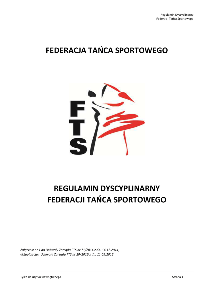 Regulamin dyscylinarny FTS - Federacja Tańca Sportowego