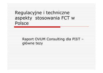 Regulacyjne i techniczne aspekty stosowania FCT w Polsce