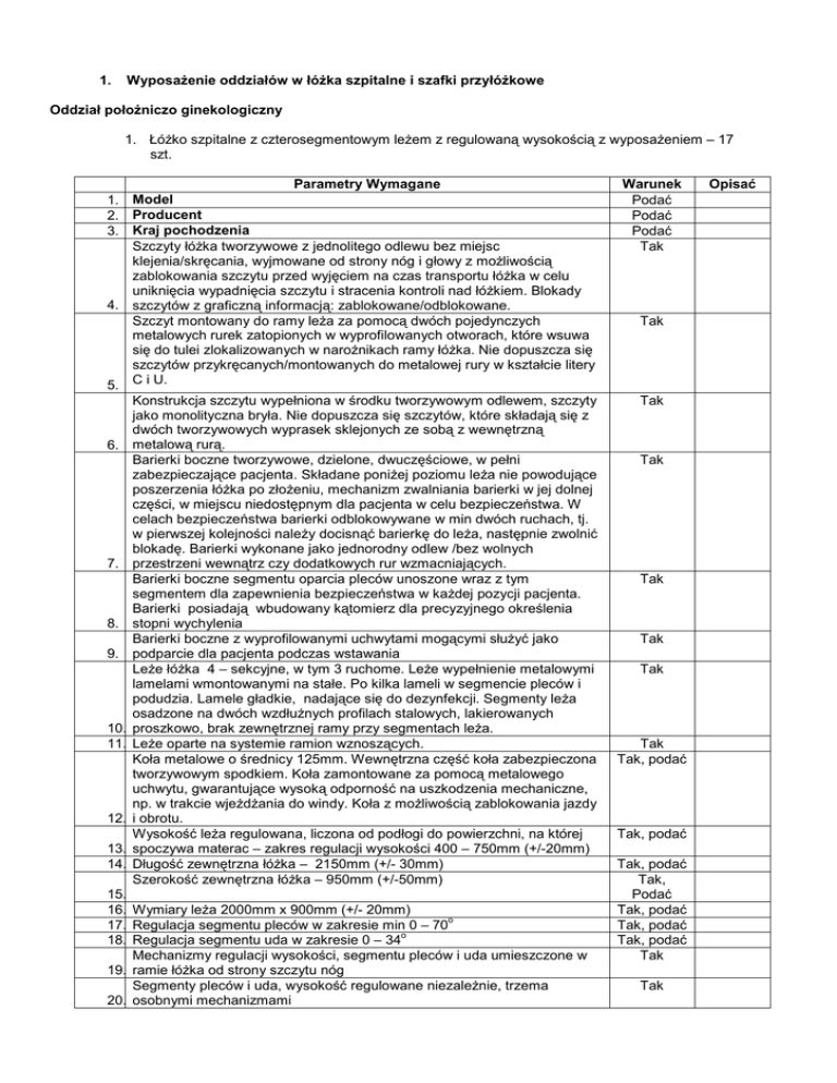 1. Wyposażenie oddziałów w łóżka szpitalne i szafki przyłóżkowe