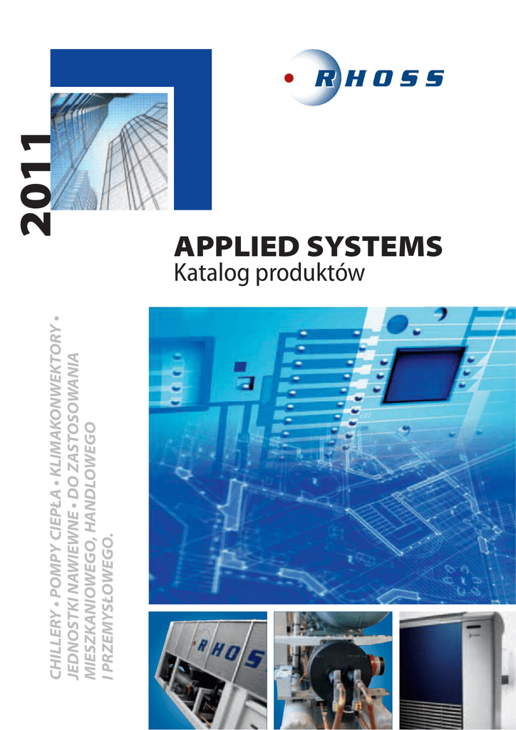 CHILLERY • POMPY CIEPŁA • KLIMAKONWEKTORY • JEDNOSTKI NAWIEWNE • DO ZASTOSOWANIA MIESZKANIOWEGO, HANDLOWEGO I PRZEMYSŁOWEGO. Katalog produktów 2011 APPLIED SYSTEMS Arquà Polesine (RO) - Włochy Codroipo (UD) - Włochy Cluj Napoca - Rumunia Pekin - Chiny Barcelona - Hiszpania Baligen - Niemcy legenda zakłady produkcyjne filie handlowe dystrybutorzy Arquà Polesine (RO) - Włochy Lyon - Francja Jedna z największych grup włoskich w sektorze ogrzewania i klimatyzacji. Nasza misja Poprawa jakości życia w pomieszczeniach sektora publicznego, mieszkaniowego oraz usługowego dzięki ofercie wysoko wyspecjalizowanych urządzeń, usług i systemów klimatyzacyjnych oraz najwyższej uwadze poświęcanej potrzebom klienta z zachowaniem założeń utrzymywania równowagi w środowisku naturalnym, odpowiednich dla technologii zielonego budownictwa. Know-how i doświadczenie w rękach specjalistów. IRSAP od 1963 jest liderem w OFFICINA DELLE IDEE linia RHOSS od 1968 działa w sekto- IR TECH firma wyspecjalizowa- produkcji stalowych grzejni- dedykowana grzejnikom rze klimatyzacji na polu cywil- na w klimatyzacji promienni- ków rurowych. IRSAP to bijące designerskim. nym i przemysłowym. kowej i odnawialnych źródłach serce Grupy: zamyka w sobie OFFICINA DELLE IDEE nadaje RHOSS to powiew świeżości nie energii. ciepło niesione przez ogień oraz każdemu pomieszczeniu uni- tylko wokół ciała, ale i umysłu, IR TECH stawia solidne podstawy pasję dla komfortu. kalny styl, dając formę każdemu dzięki produktom i systemom służące do zarządzania klimatem pragnieniu. będącym w stanie odnowić ob- i jest w stanie „promieniować“ licze klimatyzacji. innowację i profesjonalność. Powstaje EXP, innowacyjna, wielofunkcyjna pompa ciepła do zastosowania w instalacjach 2- i 4-rurowych. CTA ADVANCE nowa gama centrali przygotowujących powietrze typu „Custom”. PROJEKTOWANIE MAJĄCE NA WZGLĘDZIE WYDAJNOŚĆ ENERGETYCZNĄ I DESIGN Ponowne opracowanie pod względem inżynieryjnym gamy produktów i zwiększenie nakładów na linie produkcyjne poprzez uzupełnienie każdej z nich kabinami do prób technicznych. Powstaje laboratorium Badań i Rozwoju z homologacją do testowania agregatów chłodniczych i pomp ciepła, zgodnie z normą „RATING STANDARD FOR LIQUID CHILLING PACKAGES“ ( 6 /C 0 0 3 - 2 0 1 0 ) Eurovent, która gwarantuje i certyfikuje wymagane osiągi. Certyfikat Eurovent dla Chillerów, Pomp ciepła i Konwektorów wentylatorowych. 2005 CEL „CIĄGŁE ULEPSZENIA“ 2002 2000 Nowe konwektory wentylatorowe serii EV (Brio EV i Yardy EV) designerskie i o wysokiej wydajności. Wprowadzenie gam na czynnik chłodniczy R134a i R410A, w celu osiągnięcia jak największej wydajności pod względem energetycznym. Kim jest RHOSS Rhoss to firma będąca częścią grupy Irsap, wyspecjalizowana w projektowaniu i produkcji urządzeń i systemów klimatyzacyjnych i przygotowujących powietrze. Od ponad 40 lat Rhoss gwarantuje innowację, jakość i najwyższy poziom usług. Z tego powodu jest idealnym partnerem dla specjalistów w branży HVAC. Wzrost i rozwój firmy RHOSS łączą w sobie inwestycje i projekty, których celem jest sprawienie, aby firma stała się punktem odniesienia również dla rynku międzynarodowego. Rozwój rynków oraz wzrost wymagań klientów doprowadziły do odnowy firmy, w szczególności pod względem oferty produktów i systemów o wysokiej wydajności spełniających najnowocześniejsze wymogi Zielonego Budownictwa. Powstaje Dry-Pool, pierwszy odwilżacz do basenów na czynnik chłodniczy R410A, z odzyskiem ciepła i Yardy HP, konwektor wentylatorowy kanałowy o wysokich osiągach. Stały kontrakt badawczy z Uniwersytetami, wspierający innowacje. OD PRODUKTU DO SYSTEMU 2011 INNOWACJA POD WZGLĘDEM TECHNOLOGII Rozwój innowacyjnych rozwiązań mających na celu zwiększenie komfortu i oszczędności energetycznej. Gama MODULAR centrali przygotowujących powietrze z regulacją i wysokim poziomem wydajności. Technologia „Niskie zużycie energii“ stosowana w chillerach i w pompach ciepła działających na czynnik chłodzący R410A, dla zmniejszenia sezonowego zużycia energii. 2008 Powstaje Y-M.I.C.H., technologia inverterowa stosowana w agregatach chłodniczych i pompach ciepła. Rozwiązania dotyczące ogrzewania, chłodzenia i wytwarzania gorącej wody użytkowej oparte na działaniu wysoce wydajnych pomp ciepła posiadających certyfikat NF. Od certyfikacji maszyn po certyfikację systemu z odniesieniem do głównych norm dotyczących środowiska i jakości powietrza. IR TECH, oddział firmy Rhoss zajmujący się klimatyzacją promiennikową, proponuje rozwinięty, zintegrowany system zwiększający komfort i minimalizujący zużycie energii przez instalację. Innowacyjny system został opracowany w nowym laboratorium R&D Lab firmy Rhoss, będącym w stanie symulować warunki systemu budynek-instalacja. Świadome projektowanie i świadomy wybór RHOSS opiera swoją filozofię produkcyjną na podstawowej idei: przetestować zachowanie produkowanych urządzeń we wszystkich warunkach otoczenia, w jakich będą mogły pracować. Odpowiedzialny producent musi dostarczyć swym projektantom prawidłowe dane dotyczące pracy urządzeń we wszystkich możliwych warunkach roboczych, ponieważ każda instalacja klimatyzacyjna musi być w stanie osiągać specyficzną wydajność energetyczną, zmienną w zależności od obszaru geograficznego, charakterystyki budynku oraz swego przeznaczenia. Laboratorium R&D Lab firmy Rhoss, dzięki swym salom do prób technicznych, daje swoim klientom szereg gwarancji niezbędnych do świadomego projektowania: gwarancja osiągów w warunkach projektowych, zazwyczaj innych od warunków nominalnych Eurovent; gwarancja wydajności przy pełnym obciążeniu (EER, COP) lub przy obciążeniu częściowym (ESEER); gwarancja ciągłej pracy, zwłaszcza w krytycznych warunkach roboczych: mowa tu o surowych klimatach, w k