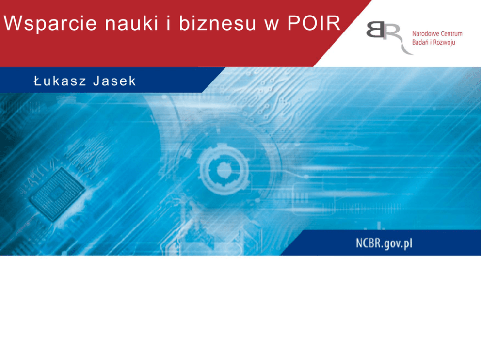 Wsparcie nauki i biznesu w POIR Łukasz Jasek POIR – ogólne informacje I oś POIR – przegląd i alokacja IV oś POIR – przegląd i alokacja Instrumenty I osi – analiza Finansowanie Harmonogram konkursów Najważniejsze założenia POIR Główny cel POIR – wzrost innowacyjności polskiej gospodarki Zgodność z Krajowymi Inteligentnymi Specjalizacjami (KIS) Położenie większego nacisku na współpracę sektorów biznesu i nauki Zwiększenie nakładów na B+R ponoszonych przez przedsiębiorstwa (BERD = 0,85% PKB do 2020) Hasło przewodnie - wsparcie projektów od pomysłu do rynku Instrumenty wsparcia skierowane głównie do przedsiębiorstw w celu podjęcia przez nie i rozwoju działalności B+R+I Podział na osie priorytetowe - POIR I. Wsparcie prowadzenia prac B+R przez przedsiębiorstwa II. Wsparcie otoczenia i potencjału przedsiębiorstw do prowadzenia prac B+R III. Wsparcie innowacji w przedsiębiorstwach IV. Zwiększenie potencjału naukowo-badawczego V. Pomoc techniczna 12,11% 44,7% 25,55% IP dla I i IV osi 5 mld € 3,44% 58,9% alokacji 14,2% I oś II oś III oś IV oś V oś POIR - alokacja I oś POIR – przegląd i alokacja IV oś POIR – przegląd i alokacja Instrumenty I osi – analiza Finansowanie Harmonogram konkursów Instrumenty I Osi - przegląd Projekty B+R przedsiębiorstw (tzw. Szybka ścieżka) Projekty B+R przedsiębiorstw związane z wytworzeniem linii pilotażowej Projekty B+R realizowane przez konsorcja przemysłowe i przedsiębiorstwa w danym sektorze gospodarki (tzw. Programy sektorowe) Prace B+R realizowane z udziałem funduszy kapitałowych (tzw. Bridge) Instrumenty I Osi - alokacja Nr Projekty B+R przedsiębiorstw Alokacja w mln € (UE) 2 537 1.1.1 Szybka ścieżka 1 880 1.1.2 Demonstrator 657 1.2 Programy sektorowe 875 1.3 BRIdge 438 1.1 Nazwa działania Szybka Ścieżka Cel - podniesienie innowacyjności polskich przedsiębiorców dzięki wykorzystaniu rezultatów prac B+R w prowadzonej działalności gospodarczej Beneficjent – przedsiębiorca, posiadający status MŚP Prace B+R prowadzone samodzielnie lub przy współpracy z podmiotem zewnętrznym (na zasadzie podwykonawstwa) - do 50% kosztów kwalifikowalnych Minimalne koszty kwalifikowalne – 2 mln PLN Maksymalne koszty kwalifikowalne – 50 mln EUR Realizacja instrumentu powinna zapewnić przedsiębiorcy możliwość doprowadzenia technologii do etapu, kiedy będzie można ją skomercjalizować lub zaimplementować na rynku w postaci produktu/usługi/procesu Przyspieszona procedura oceny – ok 60 dni Ocena przez panel ekspertów Badania przemysłowe i prace rozwojowe albo prace rozwojowe TRL II do IX Projekt wpisuje się w „Krajową Inteligentną Specjalizację” I N S TA L A C J E P I L O TA Ż O W E Prace badawczo-rozwojowe związane z wytworzeniem instalacji pilotażowej Beneficjent – przedsiębiorstwo (duże lub MŚP) Prace B+R prowadzone samodzielnie lub przy współpracy z podmiotem zewnętrznym (na zasadzie podwykonawstwa) - do 50% kosztów kwalifikowalnych Minimalne koszty kwalifikowalne – dla MŚP 5 mln PLN – dla dużego przedsiębiorstwa 20 mln PLN Prace rozwojowe Maksymalne koszty kwalifikowalne – 50 mln EUR Ocena przez ekspertów naukowo-technologicznych i gospodarczych oraz panel ekspertów biznesowych TRL VI do IX Projekt wpisuje się w „Krajową Inteligentną Specjalizację” Programy Sektorowe Programy finansowania prac B+R w przedsiębiorstwach w danym sektorze gospodarki, utworzone jako odpowiedź na potrzeby przedstawicieli środowiska – zrzeszonych przedsiębiorców prowadzących działalność w tym sektorze Beneficjent – przedsiębiorca lub konsorcjum przemysłowe Prace B+R prowadzone samodzielnie lub przy współpracy z podmiotem zewnętrznym (na zasadzie podwykonawstwa) – do 50%/60% kosztów kwalifikowalnych Minimalne i maksymalne koszty kwalifikowalne – w zależności od programu Ocena przez ekspertów naukowo-technologicznych i gospodarczych oraz panel ekspertów Badania przemysłowe i prace rozwojowe albo prace rozwojowe TRL II do IX Mechanizm przedsiębiorczeg o odkrywania Projekt wpisuje się w „Krajową Inteligentną Specjalizację” POIR - alokacja I oś POIR – przegląd i alokacja IV oś POIR – przegląd i alokacja Instrumenty I osi – analiza Finansowanie Harmonogram konkursów Finansowanie – intensywność wsparcia Badania przemysłowe Prace rozwojowe Maks. pomoc na badania przemysłowe Maks. pomoc na badania przemysłowe z premią Maks. pomoc na prace rozwojowe Maks. pomoc na prace rozwojowe z premią Mikroprzedsiębiorstwa 70% 80% 45% 60% Małe przedsiębiorstwa 70% 80% 45% 60% Średnie przedsiębiorstwa 60% 75% 35% 50% Przedsiębiorstwa inne niż MŚP 50% 65% 25% 40% Status przedsiębiorcy Poziom wsparcia ..jeśli koszty kwalifikowalne badań przemysłowych przekraczają połowę całości kosztów kwalifikowalnych – ..jeśli koszty kwalifikowalne prac rozwojowych przekraczają połowę całości kosztów kwalifikowalnych – 20 mln € 15 mln € Finansowanie – koszty kwalifikowalne Wynagrodzenia Podwykonawstwo (max 50-60% KK) Inne koszty bezpośrednie, w tym: Koszty bezpośrednie Koszty pośrednie Koszty aparatury oraz wartości niematerialnych i prawnych – tylko koszty amortyzacji lub odpłatnego korzystania Koszty budynków i gruntów – dzierżawa gruntów, wieczyste użytkowanie gruntów, amortyzacja budynków Pozostałe koszty operacyjne Całkowita wartość projektu Koszty kwalifikowalne Koszty niekwalifikowalne Ryczałt 17% Finansowanie z NCBR Wkład własny przedsiębiorcy Dziękuję za uwagę