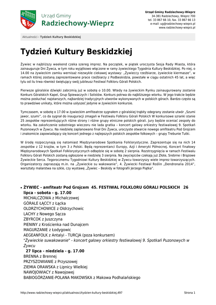 Tydzień Kultury Beskidzkiej - Urząd Gminy Radziechowy