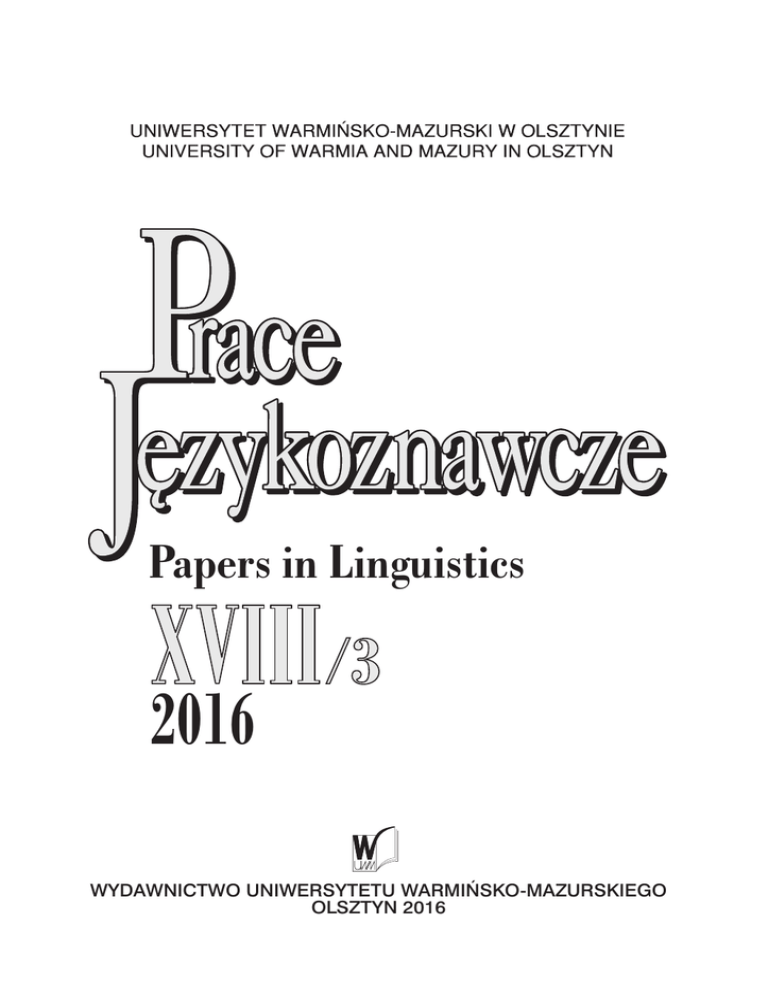Wstęp 1 Papers in Linguistics XVIII /3 2016 WYDAWNICTWO UNIWERSYTETU WARMIŃ SKO-MAZURSKIEGO OLSZTYN 2016 2 Mariusz Rutkowski Tytuł angielski: PAPERS IN LINGUISTICS Rada Programowa ZOFIA ABRAMOWICZ (Białystok), MARIA BIOLIK (Olsztyn), BERNHARD BREHMER (Greifswald, Niemcy), MIROSŁAW DAWLEWICZ (Wilno, Litwa), LILIANA DIMITROVA-TODOROVA (Sofia, Bułgaria), ADAM DOBACZEWSKI (Toruń), JERZY DUMA (Warszawa), CHRISTINA GANSEL (Greifswald, Niemcy) IWONA KOSEK (Olsztyn), JAROMIR KRŠKO (Banská Bystrica, Słowacja), VALENTINA KULPINA (Moskwa, Rosja), MARIUSZ RUTKOWSKI (Olsztyn), WANDA SZULOWSKA (Warszawa), MÁRIA VARGA (Györ, Węgry), MARIA WOJTAK (Lublin), EWA ŻEBROWSKA (Olsztyn) Redakcja informuje, że wersją pierwotną czasopisma jest wydanie papierowe Czasopismo wdrożyło procedurę zabezpieczającą przed zjawiskiem ghostwriting Redaktor naczelny MARIA BIOLIK Redaktorzy zeszytu ALINA NARUSZEWICZ-DUCHLIŃSKA, MARIUSZ RUTKOWSKI Redaktorzy tematyczni ALINA NARUSZEWICZ-DUCHLIŃSKA, EWA KUJAWSKA-LIS, ANNA DARGIEWICZ Sekretarze redakcji IZA MATUSIAK-KEMPA, IWONA GÓRALCZYK Redaktorzy językowi ROBERT LEE, EWA KUJAWSKA-LIS, MARZENA GUZ, RENATA MAKAREWICZ, SEBASTIAN PRZYBYSZEWSKI Redaktor statystyczny MONIKA CZEREPOWICKA Projekt okładki BARBARA LIS-ROMAŃCZUKOWA Redakcja wydawnicza BARBARA STOLARCZYK ADRES REDAKCJI UWM w Olsztynie, Instytut Filologii Polskiej ul. Kurta Obitza 1, 10-725 Olsztyn tel. 895276313; e-mail: [email protected] On-line:http:/wydawnictwo.uwm.edu.pl; http:/www.uwm.edu.pl/polonistyka/pracejezykoznawcze/ ISSN 1509-5304 © Copyright by Wydawnictwo UWM • Olsztyn 2016 Wydawnictwo UWM, Olsztyn 2016 Nakład: 125 Ark. wyd. 17,5; ark druk. 15,0 Druk: Zakład Poligraficzny UWM, zam. nr 665 Wstęp 3 Spis treści Artykuły Mariusz Rutkowski (Olsztyn): Wstęp....................................................................... 5 Elżbieta Bogdanowicz (Białystok): Rola nazw własnych w publicystycznych tekstach prasowych................................................................................................. 7 Izabela Domaciuk-Czarny (Lublin): Uwagi o nazwach własnych w tekstach gier komputerowych z gatunku fantasy................................................................. 19 Mateusz Flont (Kraków): Tytuły polskich zinów. Wstęp do badań nad onimią „trzeciego obiegu” (1978–1989) i „obiegu alternatywnego” (od 1990) .................. 31 Iwona Góralczyk (Olsztyn): Prezes Wszystko-mogę Kaczyński. Sekundarne użycia antroponimów w przedwyborczym dyskursie politycznym........................ 55 Marcelina Kałasznik (Wrocław): Nazwy programów telewizyjnych z udziałem celebrytów – próba analizy semantyczno-pragmatycznej..................................... 65 Krzysztof Kaszewski (Warszawa): Tytuły gier komputerowych – tendencje fleksyjne................................................................................................................... 77 Anna Kochanowska (Toruń): Les noms propres des hommes politiques polonais en français et leurs interprétations ....................................................................... 89 Marcin Kojder, Mariusz Koper (Lublin): Przezwiska i pseudonimy sportowców..... 101 Monika Kresa (Warszawa): Same swoje onimy filmowe – analiza wybranych nazw własnych pierwszej części trylogii Sylwestra Chęcińskiego i Andrzeja Mularczyka.............................................................................................................. 113 Julia Legomska (Katowice): Tytuły współczesnych czasopism jako werbalno-wizualne znaki rozpoznawcze ideowych wspólnot (na wybranych przykładach magazynów dla rodziców)........................................................................................ 129 Alina Naruszewicz-Duchlińska (Olsztyn): Onimiczna kreatywność translatorska w tytułach filmów i seriali............................................................... 147 Iwona Anna NDiaye (Olsztyn): Tytuły precedensowe w prasie rosyjskiej – semantyka i funkcjonowanie................................................................................ 159 Mariusz Rutkowski (Olsztyn): Medioonomastyka w ramach mediolingwistyki.... 171 Joanna Szczęk, Marcelina Kałasznik (Wrocław): „Świat na talerzu” i „Masterchef” – onomastyka medialna w zakresie kulinariów............................ 181 Ewa Szkudlarek-Śmiechowicz (Łódź): Analiza dyskursywno-genologiczna nazw telewizyjnych programów publicystycznych w Polsce (2005–2015)............ 193 Agnieszka Wojcieszek (Opole): Od Grzesznego kąska po Gejzer namiętności. Onimy w świecie kuchni erotycznej........................................................................ 207 Piotr Złotkowski (Lublin): Świadomość użytkowników forów genealogicznych w zakresie nominacji antroponimicznej................................................................. 219 Recenzje, omówienia, sprawozdania, komunikaty Sprawozdanie z konferencji „Onomastyka medialna”, Olsztyn, 22–23 października 2015 (Alina Naruszewicz-Duchlińska, Olsztyn)..................................................... 237 4 Mariusz Rutkowski Contents Articles Mariusz Rutkowski (Olsztyn): Introduction............................................................. 5 Elżbieta Bogdanowicz (Białystok): The role of proper names in journalistic texts.......................................................................................................................... 7 Izabela Domaciuk-Czarny (Lublin): Some Remarks on Proper Names in Fantasy Computer Games.................................................................................. 19 Mateusz Flont (Kraków): Titles of the Polish zines. Introduction to onomastics study of the third circulation (1978–1989) and the “alternative circulation” (since 1990).............................................................................................................. 31 Iwona Góralczyk (Olsztyn): Prezes Wszys