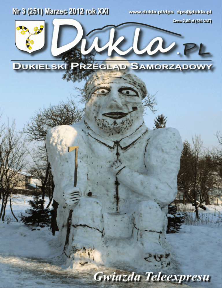 Nr 3 (251) Marzec 2012 rok XXI www.dukla.pl/dps [email protected] Cena 2,80 zł (5% VAT) nr 251 Gwiazda Teleexpresu Dukla.pl str. 1 Koronki flamandzkie w dukielskim muzeum W Muzeum Historycznym - Pałac w Dukli od 16 lutego do 30 marca br. można oglądać wystawę koronek flamandzkich ze zbiorów Wilfrieda de Meyera, belgijskiego kolekcjonera. Wilfried de Meyer urodził się w Antwerpii. W Jego życie zawodowe wpisane były podróże, najpierw pływał na statkach, później jeździł samochodami ciężarowymi po całej Europie. Na szlaku przejazdów Wilfrieda de Meyera znalazła się Polska, która stała się Jego drugą ojczyzną, tym bardziej, że poznał tutaj żonę, panią Teresę, z którą od 14 lat mieszka w Gorlicach. Pasję kolekcjonerską zaszczepił w Nim dziadek, gromadzący znaczki pocztowe, dzięki któremu w wieku 9 lat rozpoczął również ich zbieranie. Z czasem rozszerzył swe zainteresowania na inne przedmioty, m. in. medale, monety, pocztówki oraz przedmioty rzemiosła artystycznego, które złożyły się na prezentowane przez Niego wystawy (np. „Historia Polski na medalach”, „Sztućce z całego świata”, „Historia mody i strojów krajów str. 2 europejskich” oraz dotyczące Fryderyka Chopina, Mikołaja Kopernika i inne). Niektóre z tych tytułów realizowane były także w naszym muzeum. Koronki flamandzkie należą do jednej z większych kolekcji Wilfrieda de Meyera. Region Flamandzki to jeden z trzech regionów federalnych Belgii, położony w północnej części kraju. Podzielony jest na 5 prowincji: Antwerpię ze stolicą o tej samej nazwie, z której pochodzi pan de Meyer, Limburgię, Flandrię Wschodnią, Flandrię Zachodnią oraz Brabancję Flamandzką, która otacza osobny Region Stołeczny Brukseli. Na określenie Regionu Flamandzkiego używa się też wieloznacznego terminu Flandria. Sztuka koronkarska do Flandrii została przeniesiona w XVI wieku z Włoch. Koronki stanowiły elegancką ozdobę szat dworskich, jak również li- turgicznych, należały do luksusowych i bardzo cennych wyrobów. Z pewnością nie brakowało ich także w pałacu dukielskim. Około połowy XVII wieku nastąpił we Flandrii wielki rozkwit głównie koronek klockowych. Największe ośrodki koronkarskie powstały w księstwie Brabancji: Bruksela, Malines (obecnie Mechelen – miasto w prowincji Antwerpia) oraz w hrabstwie Flandrii: Brugia (obecnie stolica Flandrii Zachodniej) i Gandawa (obecnie stolica Flandrii Wschodniej). Od włoskich koronek igłowych, typu reticella (ich technika polegała na osnuwaniu nici na kawałku tkaniny, usuwanej po wykonaniu wzoru), różniły się sposobem wykonywania. Wyrabiano je za pomocą nici nawiniętych na specjalne szpulki, zwane klockami, przeplatanych i wiązanych w odpowiedni sposób. Stosowano nici jedwabne, lniane, wełniane i bawełniane. Na wystawie wyeksponowany jest mały warsztat do wyrobu koronek klockowych. Koronki otrzymywały nazwy od miast słynących z ich wyrobu. Znane były koronki brukselskie, miały tło siatkowe, wykonywane techniką klockową, które w XIX w. zostało zastąpione tiulem maszynowym. Dekorowane były motywami roślinnymi lub też przedstawieniami figuralnymi (wykonywane techniką igłową). Koronki z Brugii (bruges) były podobne do bruk- Dukla.pl Złota myśl: Wspomnienie zimy „Człowiek szuka miłości, bo w głębi serca wie, że tylko miłość może uczynić go szczęśliwym [Jan Paweł II]” W marcowym numerze: Koronki flamandzkie w dukielskim muzeum...............................................................................................2 Wspomnienie zimy........................................................................................................................................3 Gmina Dukla – mapa turystyczno -nazewnicza..........................................................................................4 Niedzielne dyżury aptek................................................................................................................................4 OCHOTNICZA STRAŻ POŻARNA W DUKLI.....................................................................................................4 Dominik, Damian i Grzegorz wezmą udział w eliminacjach powiatowych.................................................5 Płatności bezpośrednie dla rolników...........................................................................................................5 Każdy może realizować tu swoje pasje........................................................................................................6 Opłatkowe spotkanie....................................................................................................................................7 Jak to z Dniem Kobiet było...........................................................................................................................7 KONKURS WIELKANOCNY............................................................................................................................8 I Konkurs Poezji Obcojęzycznej ...................................................................................................................8 „ŚLADAMI ARCHITEK TURY SAKRALNEJ”....................................................................................................8 Ferie z Ośrodkiem Kultury............................................................................................................................9 Krok w przedsiębiorczość.............................................................................................................................9 Wesołe ferie w Wietrznie..............................................................................................................................9 Wyróżnienie dla Krotosa............................................................................................................................ 10 RADIO FARA W POKOJU PAPIESKIM......