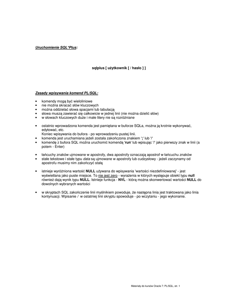 Materiały do kursów Oracle 7: PL/SQL, str. 1