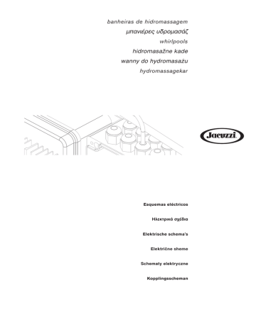 banheiras de hidromassagem Ì·ÓȤÚ˜ ˘‰ÚÔÌ·Û¿˙ whirlpools hidromasažne kade wanny do hydromasa˝u hydromassagekar Esquemas eléctricos ∏ÏÂÎÙÚÈο Û¯¤‰È· Elektrische schema's Električne sheme Schematy elektryczne Kopplingsscheman Segurança eléctrica . . . . . . . . . . . . . . . . . . . . . 3 ∏ÏÂÎÙÚÈ΋ ·ÛÊ¿ÏÂÈ· . . . . . . . . . . . . . . . . . . . . 4 Elektrische veiligheid . . . . . . . . . . . . . . . . . . . 5 Električna zaštita . . . . . . . . . . . . . . . . . . . . . . . 6 Bezpieczeƒstwo elektryczne . . . . . . . . . . . 7 Elsäkerhet . . . . . . . . . . . . . . . . . . . . . . . . . . . . . . . 8 JP 12 DISI JP 7 . . . . . . . . . . . . . . . . . . . . . . . . . . . . . . . . . . . 9 JP 12 DIS . . . . . . . . . . . . . . . . . . . . . . . . . . . . 25 JP7 DIS . . . . . . . . . . . . . . . . . . . . . . . . . . . . . . 10 JP 12 F DIS . . . . . . . . . . . . . . . . . . . . . . . . . . 26 JP 7 Y . . . . . . . . . . . . . . . . . . . . . . . . . . . . . . . 11 JP 12 TLC / JP 12 DIS TLC . . . . . . . . . . . . 27 JP 7 Y DIS . . . . . . . . . . . . . . . . . . . . . . . . . . . 12 JP 12 DIS /F TLC . . . . . . . . . . . . . . . . . . . . . 28 JP 7 Y AIR . . . . . . . . . . . . . . . . . . . . . . . . . . . 13 JP 12 DIS F/R/TLC JP 7 Y AIR DIS . . . . . . . . . . . . . . . . . . . . . . . 14 JP 12 DIS F/R/A/TLC . . . . . . . . . . . . . . . . . 30 JP 7 OPD . . . . . . . . . . . . . . . . . . . . . . . . . . . . 15 JP 12 F DISI T/A/R/TLC, JP 12 DISI T/A/TLC . . . . . . . . . . . . . . . . . . . 31 . . . . . . . . . . . . . . . . . . 29 JP 7 OPF . . . . . . . . . . . . . . . . . . . . . . . . . . . . . 16 JP 12 F DOUBLE T/A/R/TLC . . . . . . . . . . 32 JP 7 OPO . . . . . . . . . . . . . . . . . . . . . . . . . . . . 17 JP 7 PNE . . . . . . . . . . . . . . . . . . . . . . . . . . . . 18 JP 12 F DISI T/B/R/TLC, JP 12 DISI T/B/TLC . . . . . . . . . . . . . . . . . . 33 JP 8 . . . . . . . . . . . . . . . . . . . . . . . . . . . . . . 19-20 2 JP 8 12 . . . . . . . . . . . . . . . . . . . . . . . . . . . . . 34 JP 8 DIS . . . . . . . . . . . . . . . . . . . . . . . . . . . . . 21 2 JP 8 12 DIS . . . . . . . . . . . . . . . . . . . . . . . . 35 AIR 70 . . . . . . . . . . . . . . . . . . . . . . . . . . . . . . . 22 2 JP 8 12 F DIS R . . . . . . . . . . . . . . . . . . 36-37 AIR 75 . . . . . . . . . . . . . . . . . . . . . . . . . . . . . . . 23 2 JP 8/12 F DIS T . . . . . . . . . . . . . . . . . . . . 38 JP 12 . . . . . . . . . . . . . . . . . . . . . . . . . . . . . . . . 24 2 JP 8/12 DIS T . . . . . . . . . . . . . . . . . . . . . . 39 Segurança eléctrica Para a ligação à instalação eléctrica do edifício, deve ser utilizado um cabo com camisa de características não inferiores ao tipo H 05 VV-F 3x2,5 mm2. Os produtos para a hidromassagem Jacuzzi ® são aparelhos seguros, fabricados no respeito das normas EN 60335-2-60, EN 55014-1, EN 55014-2. Tais aparelhos são vistoriados durante a produção para garantir a segurança do utente. A instalação deve ser realizada por pessoal qualificado, que deve garantir o respeito das disposições nacionais em vigor, assim como deve ser habilitado a efectuar a instalação. 몇 O equipamento é munido de sistema de iluminação de led, conforme as normas EN 62471:2009. É responsabilidade do instalador a escolha dos materiais em relação ao uso, a execução correcta dos trabalhos, a verificação do estado da instalação à qual se liga o aparelho e a idoneidade do mesmo para garantir a segurança de uso. As banheiras de hidromassagem Jacuzzi ® são aparelhos de classe “I” e portanto devem ser fixadas estavelmente e interligadas de modo permanente, sem junções intermediárias, à rede eléctrica e à instalação de terra. 몇 O sistema eléctrico e a ligação à terra do prédio devem ser eficientes e de conformidade com as disposições de lei e às normas nacionais específicas. 몇 Deve ser previsto um dispositivo oportuno, que faça parte da instalação fixa e instalado segundo as normas em vigor, que desconecte o aparelho da rede. 몇 O sistema eléctrico do imóvel deve ser equipado com disjuntor diferencial de 0,03 A. 몇 As peças que contêm componentes elétricos, salvo os dispositivos de comando remoto, devem ser colocadas ou fixadas de forma a não poderem cair para dentro da banheira. Componentes e equipamentos sob tensão não devem ser acessíveis a quem está imergido na banheira. A JAC UZ Z I E U R O P E S.p.A. se exime de qualquer responsabilidade se: A instalação for efectuada por pessoal não especializado e/ou não habilitado para executar a própria instalação. Não forem respeitadas as normas e disposições de lei relativas às instalações eléctricas dos imóveis em vigor no Estado onde é executada a instalação. Não forem respeitadas as disposições de instalação e manutenção reproduzidas no presente manual. Para a ligação à rede é preciso instalar um interruptor de corte unipolar, que garanta a desconexão total nas condições da categoria de sobretensão III; esse dispositivo deve ser colocado numa área que respeite as prescrições de segurança dos locais casa de banho. Forem usados para a instalação materiais não idóneos e/ou certificados. 몇 Forem realizadas operações não correctas que reduzam o grau de protecção contra jactos d'água ou modifiquem a protecção contra electrocução mediante contactos directos e indirectos, ou de alguma maneira gerem condições de isolamento, correntes de fuga e superaquecimento excessivo anómalos. As mini piscinas são instaladas não conformes às normas acima citadas. Interruptor e dispositivos eléctricos, no respeito das normas, devem ser colocados numa zona não alcançável pelo utente que está a usar o aparelho. A instalação de dispositivos eléctricos e aparelhos (tomadas, interruptores etc.) nas salas de banho deve ser de conformidade com as disposições de lei e as normas d