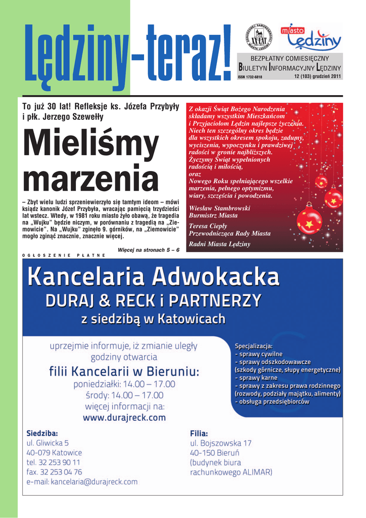Biuletyn Informacyjny Lędziny Lędziny teraz! Nr 12/2011