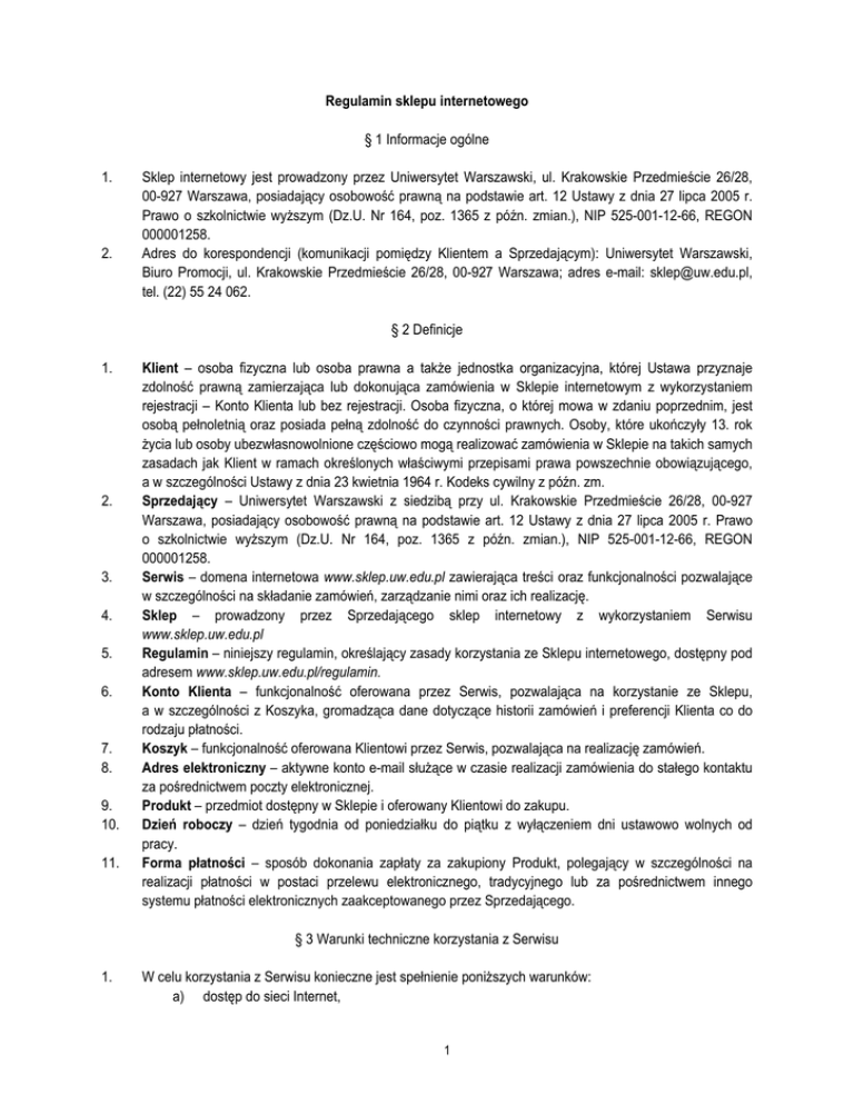 Regulamin - Sklep UW - Uniwersytet Warszawski