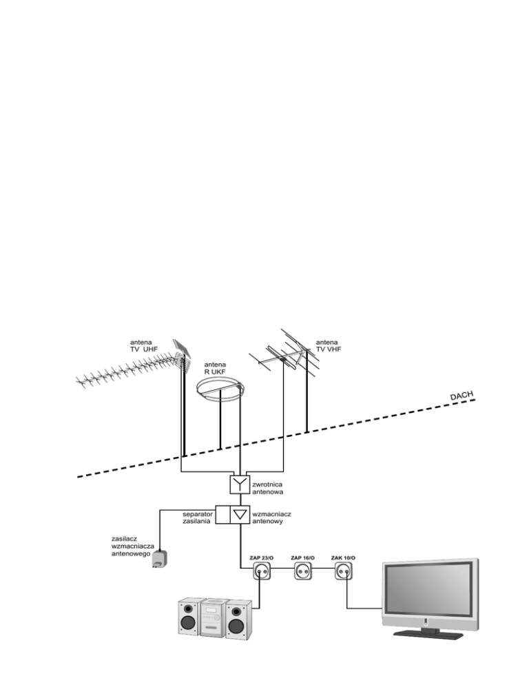 antena TV UHF antena TV VHF antena R UKF zwrotnica antenowa separator zasilania zasilacz wzmacniacza antenowego wzmacniacz antenowy ZAP 23/O ZAP 16/O ZAK 10/O