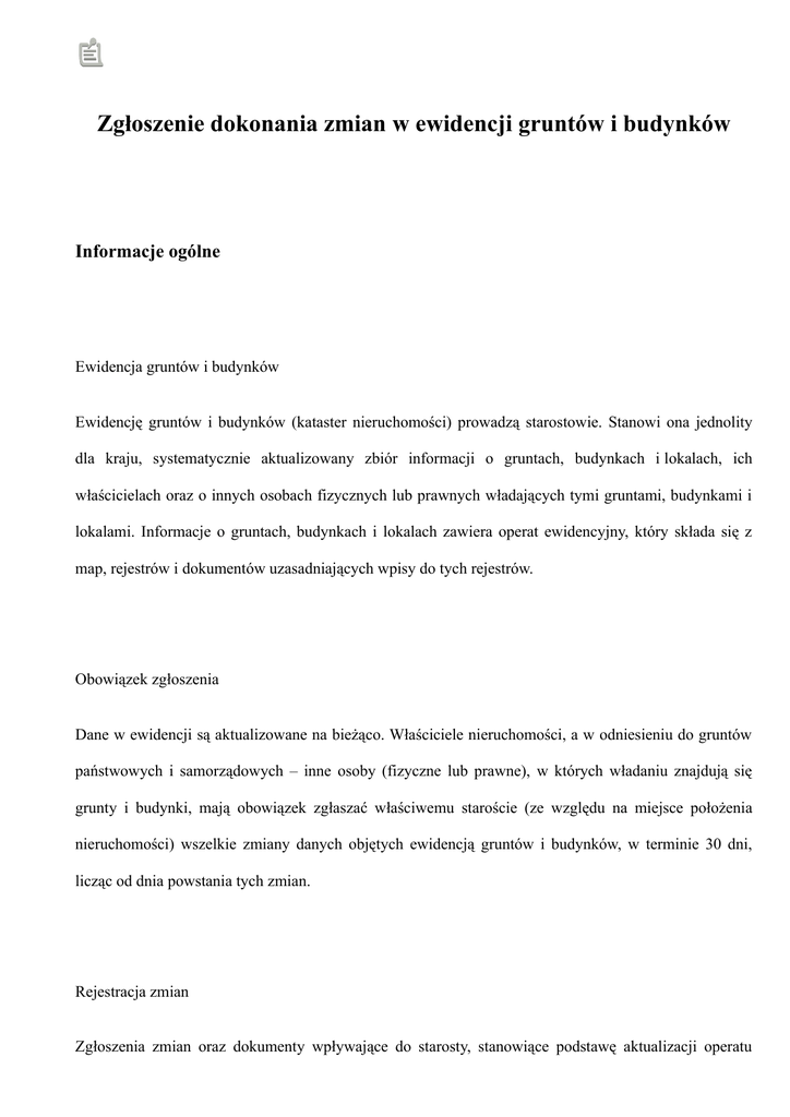 Zgłoszenie dokonania zmian w ewidencji gruntów i budynków