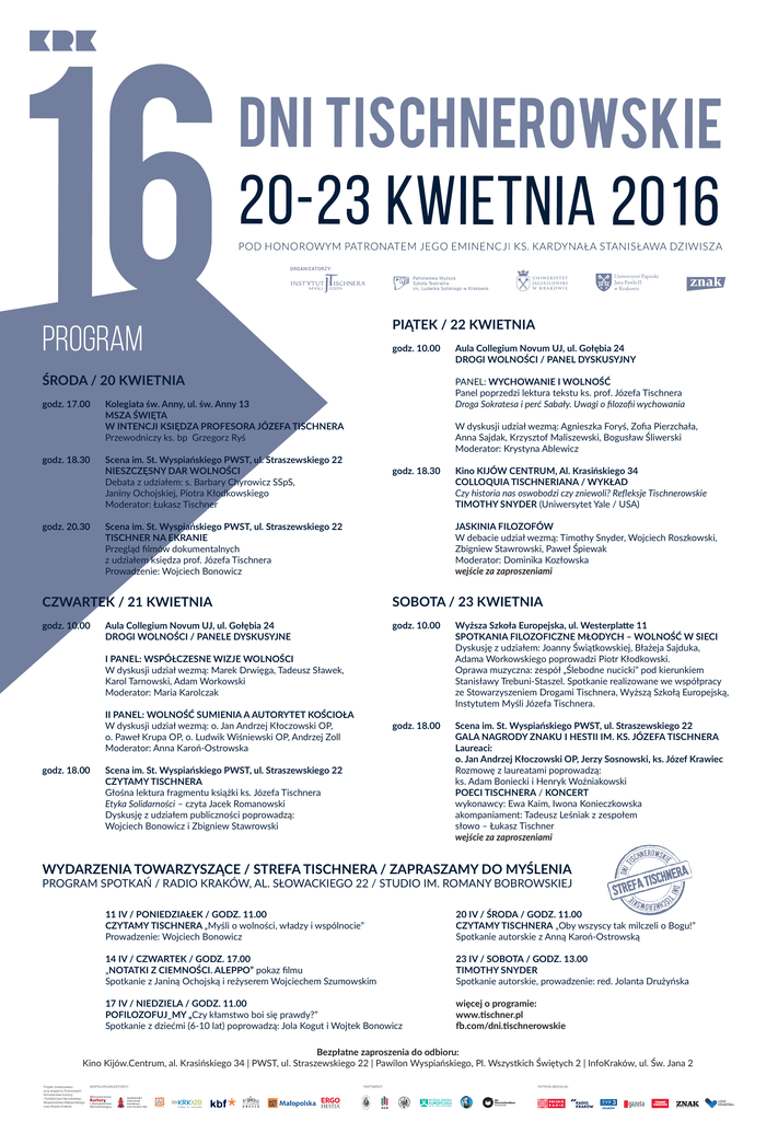 Program 16. Dni Tischnerowskich - Dni Tischnerowskie