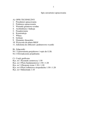 2 Spis zawartości opracowania A) OPIS TECHNICZNY 1. Przedmiot opracowania 2. Podstawa opracowania 3. Warunki gruntowo-wodne 4. Architektura i funkcja 5. Posadowienie 6. Konstrukcja 7. Włazy 8. Izolacje 9. Elementy ślusarskie 10. Wytyczne do planu BIOZ 11. Założenia do obliczeń i podstawowe wyniki B) Załączniki Nr 1 Uprawnienia projektowe i wpis do I.I.B. Nr 2 Oświadczenie projektanta C) Część graficzna Rys. nr 1 Rysunek zestawczy 1:50 Rys. nr 2 Płyta fundamentowa 1:50 i 1:20 Rys. nr 3 Zbrojenie ścian 1:50 i 1:20 Rys. nr 4 Płyta żelbetowa stropodachu 1:50 i 1:20 Rys. nr 5 Balustrada 1:10 3 Opis techniczny do projektu budowlano-wykonawczego reaktora SBR i zbiornika retencyjno-uśredniającego na oczyszczalni ścieków w m. Mokobody. Obiekty OB.5 i OB.6 (obiekt nr OB6 jest lustrzanym odbiciem obiektu OB5). Branża: architektoniczno-budowlana. 1. Przedmiot opracowania. Przedmiotem opracowania jest cylindryczny zbiornik żelbetowy o konstrukcji monolitycznej składający się z komory reaktora SBR i zbiornika retencyjo-uśredniającego, usytuowanych na jednej płycie fundamentowej. 2. Podstawa opracowania. a) Wytyczne budowlane z projektu technologicznego określające podstawowe wymiary obiektu oraz związane z nim instalacje. b) Warunki gruntowo-wodne c) Obowiązujące normy podane w poz 11. 3. Warunki gruntowe. Zbiornik zaliczono do pierwszej kategorii geotechnicznej wg PN-B-02479. W miejscu lokalizacji obiektów oczyszczalni ścieków zalegają następujące warstwy gruntów: 0,00 – 0,50m gleba próchnicza czarna 0,50 - 2,50m piasek gruby szary średniozagęszczony 2,50 – 4,00m mułek szary w stanie plastycznym. Woda gruntowa wystąpiła na głębokości 1,00m ppt. I nie jest pod napięciem. 4. Architektura i konstrukcja. Przedmiotowy zbiornik o konstrukcji żelbetowej monolitycznej składa się z dwóch komór cylindrycznych, usytuowanych na jednej płycie fundamentowej, jest to tzw. „zbiornik w zbiorniku”. Komora zewnętrzna (reaktor SBR) posiada średnicę wewnętrzną 10,36m, a komora wewnętrzna (zbiornik retencyjno-uśredniający) średnicę 4,95m. Obie komory są wysokości 5m z tym, że zbiornik wewnętrzny jest przykryty żelbetową płytą monolityczną z włazami i wywietrzakami, a zbiornik „zewnętrzny” będzie przykryty stropodachem z tworzyw sztucznych wg wytycznych producenta przykrycia. 5. Posadowienie. Poziom dna zbiornika Poziom spodu płyty fundamentowej Poziom spodu podłoża betonowego Poziom otaczającego terenu -1,10m ppt -1,40m ppt -1,55m ppt ±0,00 = 134,30m n.p.m. Zbiornik posadowiono na głębokości 1,55m poniżej poziomu terenu w warstwie piasku grubego. Należy się liczyć z koniecznością obniżenia poziomu wody gruntowej na czas wykonywania robót fundamentowych o ok.0,8m. 6. Konstrukcja. Płyta fundamentowa, ściany i płyta stropowa są wykonane z betonu monolitycznego kl.B30 (W10) z dodatkiem preparatu „HYDROZOL” K, zbrojonego stalą kl. AIIIN gat. BSt500S. Beton użyty do konstrukcji powinien być szczelny o stopniu wodoszczelności W10 i 4 wskaźniku w/c max. 0,45 – 0,50, wykonany z kruszywa otoczkowego lub łamanego, małonasiąkliwego o wielkości ziaren do 16mm. Przejścia rur usytuowane w ścianach muszą być wykonane jako szczelne przez zabetonowanie nasuwek typu „Wavin” owiniętych taśmą WATERSTOP Rx101 lub króćców rur o odpowiedniej średnicy (z kołnierzami lub bez) owiniętych taśmą j.w. Połączenia ścian z dnem powinny być uszczelnione taśmą uszczelniającą CONTAFLEXAKTIV ACF125 firmy ADAE. W czasie betonowania płyty stropowej należy pozostawić dwa otwory włazowe oraz otwory na wentylację. 7. Włazy. Projektuje się dwa włazy (800 x 800mm) ze stali nierdzewnej, ocieplone, posadowione na cokołach. Przyjęto włazy produkcji firmy SORMET z Zamościa. 8. Izolacje. Izolacja przeciwwilgociowa dna i płyty stropowej składa się z folii budowlanej ułożonej na zakład lub spawanej. Izolację przeciwwilgociową ścian i płyty dociskowej stanowi powłoka z masy asfaltowo-kauczukowej IZOBUD WL firmy IZOHAN. Izolację termiczną ściany zbiornika zewnętrznego i płyty stropodachu stanowi styropian FS15 i FS20. Na izolacji ścian przewiduje się tynk cienkowarstwowy na siatce z włókna szklanego wtopionej w masie klejowej. 9. Elementy ślusarskie. Balustrada na koronie zbiornika wewnętrznego wykonana jest ze stali nierdzewnej. Balustradę należy połączyć z balustradą pomostu stalowego ze stali ocynkowanej. Przed montażem balustrady należy skontaktować się z producentem przykrycia lekkiego zbiornika w celu ustawienia wysokości montażu ww balustrady. 10. Wytyczne do planu BIOZ. Plan BIOZ powinien zostać sporządzony przez kierownika budowy lub innego wykonawcę w oparciu o dane zawarte w Dz.U. 151 poz. 1256 z dnia 17.09.2002r. Ze względu na rodzaj przedsięwzięcia należy uwzględnić następujące zagrożenia dla bezpieczeństwa i zdrowia ludzi: - wykonywanie wykopów o ścianach pionowych bez rozparcia o głębokości większej niż 1,5m, - montaż szalunków ścian zbiornika do wysokości 5,0m przy użyciu dźwigów, - montaż zbrojenia ścian i płyty stropowej oraz betonowanie na wysokości do 5,0m, - wykonywanie ocieplenia ściany zewnętrznej i stropodachu oraz otynkowanie i roboty pokrywcze na wysokości +5,30m. Wszyscy pracownicy zatrudnieni na budowie muszą być przeszkoleni w zakresie przepisów bhp i stosować je. 11. Założenia do obliczeń i podstawowe wyniki. 11.1 Normy. - PN-81/B-03020 – Posadowienie bezpośrednie budowli - PN-82/B-02001, PN-82/B-02003, PN-82/B-02004 – Obciążenie budowli - PN-88/B-06250 (PN-EN206-1:203) – Beton - PN-B-03246-2002 – Konstrukcje betonowe, żelbetowe i sprężone. 5 11.2 Elementy zbiornika Obciążenie płyty stropowej wynosi 13,23 kN/m2 Przyjęto płytę okrągłą grubości 0,18m opartą na obwodzie. Zbrojenie stalą AIIIN ∅12 – siatką o oczkach 180mm. Ściany cylindryczne o średnicach wewnętrznych Dw=10,36m i 