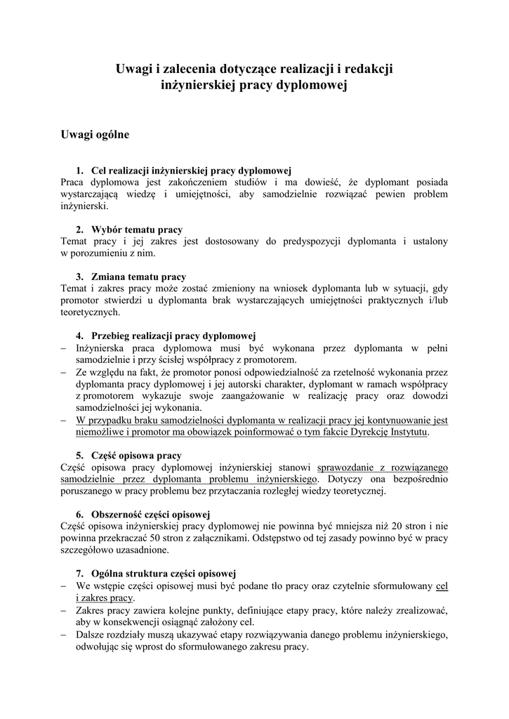 Uwagi i zalecenia dotyczące realizacji i redakcji inżynierskiej pracy