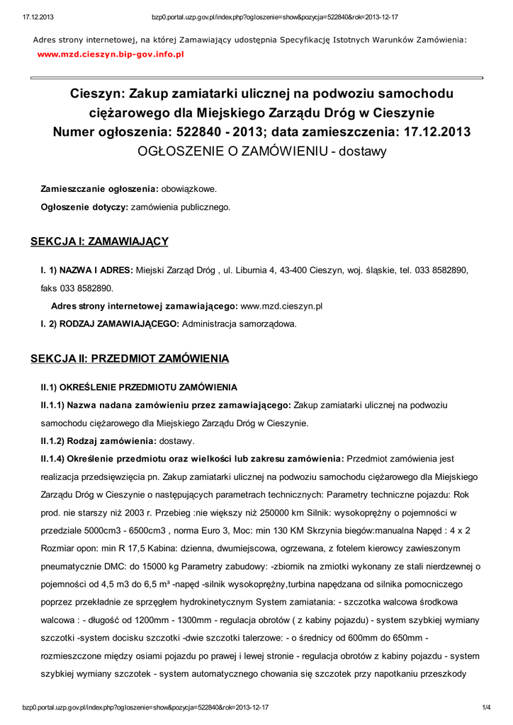 1. Ogłoszenie - BIP - Miejski Zarząd Dróg w Cieszynie