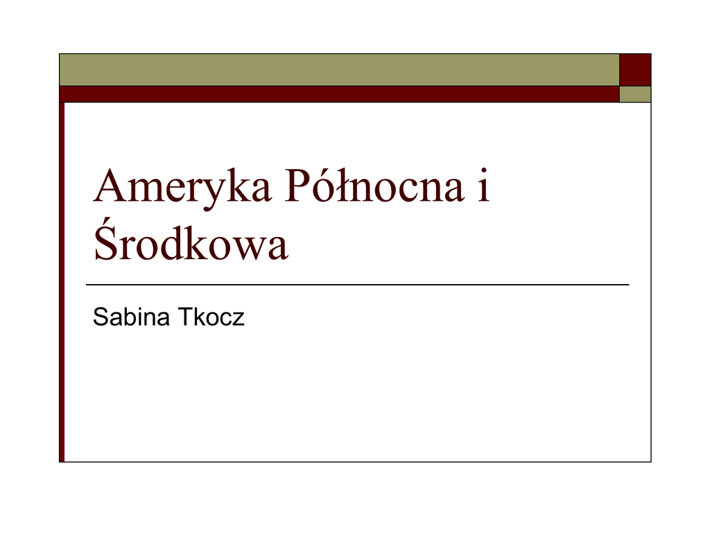 Ameryka Północna i Środkowa Sabina Tkocz Meksyk o o Leży w południowej części Ameryki Północnej, Graniczy n n o o o Od północy z USA, Od południa z Gwatemalą i Belize, Od wschodu granicą są wody Zatoki Meksykańskiej, od zachodu – Oceanu Spokojnego, Obejmuje półwyspy Kalifornijski i Jukatan, Kraj górzysto-wyżynny n Wyżyna Meksykańska (największa kraina, najgęściej zaludniona i najbardziej uprzemysłowiona), Gografia turystyczna Ameryka Północna i Środkowa 2 Meksyk n n n Wyżynę otaczają od zachodu – góry Sierra Madre Zachodnie, Od wschodu – góry Sierra Madre Wschodnie, Na południe, równoleżnikowo – Kordyliera Wulkaniczna o o n n n Setki stożków wulkanicznych, różnego wieku, Najwyższe szczyty Meksyku – Orizaba, Region o dużej aktywności sejsmicznej (prócz płw. Jukatan) i trzęsień ziemi, Pora deszczowa – maj-październik, Najwyższe temperatury i wilgotność – czerwiec-wrzesień Gografia turystyczna Ameryka Północna i Środkowa 3 Meksyk o o o Największe jezioro – Chapala, Największa rzeka – Rio Bravo del Norte = Rio Grande (na granicy z USA), Uboga roślinność n n n o Głównie agawy i kaktusy, Wytrzebiona lasy wilgotne na wybrzeżu Zat. Meksykańskiej, Roślinność chroniona w ok 50-ciu PN, Ciągle rozbudowywana sieć komunikacyjna, szczególnie gęsta sieć dróg w kier. USA, Gografia turystyczna Ameryka Północna i Środkowa 4 Meksyk o Baza noclegowa n n n n o Bardzo rozbudowana (pierwsza dziesiątka świata), Bardzo zróżnicowana (od ekskluzywnych hoteli do najtańszych moteli), Dużo, zróżnicowanych obiektów kultury, Sezon turystyczny – cały rok, Ślady dawnej kultury n n n 120 środków archeologicznych, Piramidy – „Słońca” i „Księżyca” w Teotihuacán, Budowle przedkolumbijskie, Gografia turystyczna Ameryka Północna i Środkowa 5 Meksyk o o Bogato wyposażone muzea, Atrakcje n n n liczne fiesty (przyjęcia i uroczystości z okazji świąt kościelnych, państwowych, urodzin, chrzcin, ślubów, zaręczyn, „quinceanios” Obrzędy ludowe – „pasada” (jak w Polsce kolędnicy), Rodeo (jazda na bykach), „corrida de torros”, „palenque”, popisy zręcznościowe, Gografia turystyczna Ameryka Północna i Środkowa 6 Meksyk o Regiony turystyczne – wybrzeże Pacyfiku n n n n n n n n n Wybrzeże O. Spokojnego i Morza Karaibskiego, Piękne położenie, Klimat, Dobra baza turystyczna, Międzynarodowe porty lotnicze, Czyste, ciepłe wody (gł. M. Karaibskie), Piaszczyste, czyste plaże, Mitla – centrum sakralne, kompleks 3 pałacy, Monte Alban – zespół monumentalnych świątyń, Gografia turystyczna Ameryka Północna i Środkowa 7 Meksyk o Regiony turystyczne – wybrzeże Pacyfiku n Acapulco o o o n „Perła Pacyfiku”, Największe centrum turystyczne Ameryki Łacińskiej, Nad Zatoką Acapulco, Taxco o o o Gografia turystyczna Położone w kotlinie, Bogate złoża srebra, Liczne pałace (Casa Figueroa, Casa Borda), Ameryka Północna i Środkowa 8 Meksyk o Regiony turystyczne – region środkowy n Teotihuacán o o o o o Gografia turystyczna Zwany „Miastem Bogów”, Ośrodek archeologiczny, Zespoły zabytkowe – dawne centrum religijne i kulturowe zabytki sakralne – piramidy różnych kultur indiańskich („Słońca” „Księżyca”, Cytadela, Świątynia Quetzalcoatla, Wzdłuż „drogi zmarłych”, Ameryka Północna i Środkowa 9 Meksyk o Regiony turystyczne – region środkowy n Meksyk o o o o o o Gografia turystyczna Stolica Meksyku, Ówczesna stolica imperium Azteków – Tenochtitlan, Jedno z największych miast świata, Najważniejsza Bazylika Nuestra Señora de Guadalupe – obiekt pielgrzymek religijnych, Autonomiczny Uniwersytet Narodowy Meksyku (UNAM) – największa liczba studentów, Barokowa katedra, Ameryka Północna i Środkowa 10 Meksyk n Meksyk o o o Gografia turystyczna Stolica, Pałac wicekróla, Plac Trzech Kultur (Tlateloco), Ameryka Północna i Środkowa 11 Panama o o o Położony w najwęższej części Międzymorza Środkowoamerykańskiego, Obejmuje też ok. 1600 wysp, Granice z n n n o Kolumbią (od wschodu), Morze Karaibskie (od północy), Ocean Spokojny (od południa), Duże zróżnicowanie etniczno-kulturowe n (Metysi, Mulaci, Murzyni, Zambosi, Indianie, ludność biała, wyznania katolickiego, protestanci, hindusi, islamiści, żydzi) Gografia turystyczna Ameryka Północna i Środkowa 12 Panama o o o o Stolica – Panama, Kanał Panamski – od 2000 r. „własność” Panamy, 10% analfabetyzm, Słabo rozwinięta sieć komunikacyjna, n n o Droga Panamerykańska – najważniejsza droga, Brak połączenia drogowego z Kolumbią, Warunki naturalne rozwoju turystyki n n Zróżnicowane wybrzeże, Malownicze, piaszczyste plaże, Gografia turystyczna Ameryka Północna i Środkowa 13 Panama o Warunki naturalne rozwoju turystyki c.d. n n n n n n Piaszczyste wysepki, Wilgotne, wiecznie zielone lasy – ponad połowa obszaru, Cenne gatunki drzew (palisander, mahoniowiec, drzewo hebanowe), Ponad połowa obszaru to góry i wyżyny (najwyższy – czynny wulkan Chiriquí), Łagodny klimat, równikowy, wybitnie wilgotny, Średnia temperatura roczna – ok. 270C, Gografia turystyczna Ameryka Północna i Środkowa 14 Panama o Główny region turystyczny – wybrzeże morskie n n Pacyfiku i M. Karaibskiego, Największe kąpieliska o o o n Colón i okolice, Archipelagi San Blas i Bocas del Toro, Archipelag Perłowy, Ogród botaniczny Summit – brzeg kanału Panamskiego, pobliże stolicy, Gografia turystyczna Ameryka Północna i Środkowa 15 Bahamy o o o o o o o Na Oceanie Atlantyckim, Obejmuje wyspy archipelagu Bahamy, Na południowy-wschód od Florydy i północ od Kuby, Podlegają pod Monarchię Brytyjską, „początki” Ameryki Łacińskiej – wyspa San Salvador – „zbawiciel”, Słabo rozwinięta sieć komunikacyjna (brak linii kolejowych), Duże wykorzystanie bazy noclegowej (ok. 68%), Gografia turystyczna Ameryka Północna i Środko