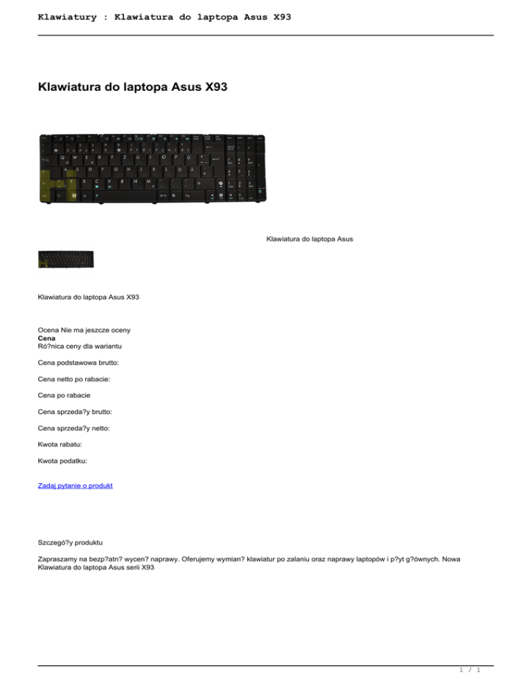 Klawiatury : Klawiatura do laptopa Asus X93 Klawiatura do laptopa Asus X93 Klawiatura do laptopa Asus Klawiatura do laptopa Asus X93 Ocena Nie ma jeszcze oceny Cena Ró?nica ceny dla wariantu Cena podstawowa brutto: Cena netto po rabacie: Cena po rabacie Cena sprzeda?y brutto: Cena sprzeda?y netto: Kwota rabatu: Kwota podatku: Zadaj pytanie o produkt Szczegó?y produktu Zapraszamy na bezp?atn? wycen? naprawy. Oferujemy wymian? klawiatur po zalaniu oraz naprawy laptopów i p?yt g?ównych. Nowa Klawiatura do laptopa Asus serii X93 1 / 1 Powered by TCPDF (www.tcpdf.org)