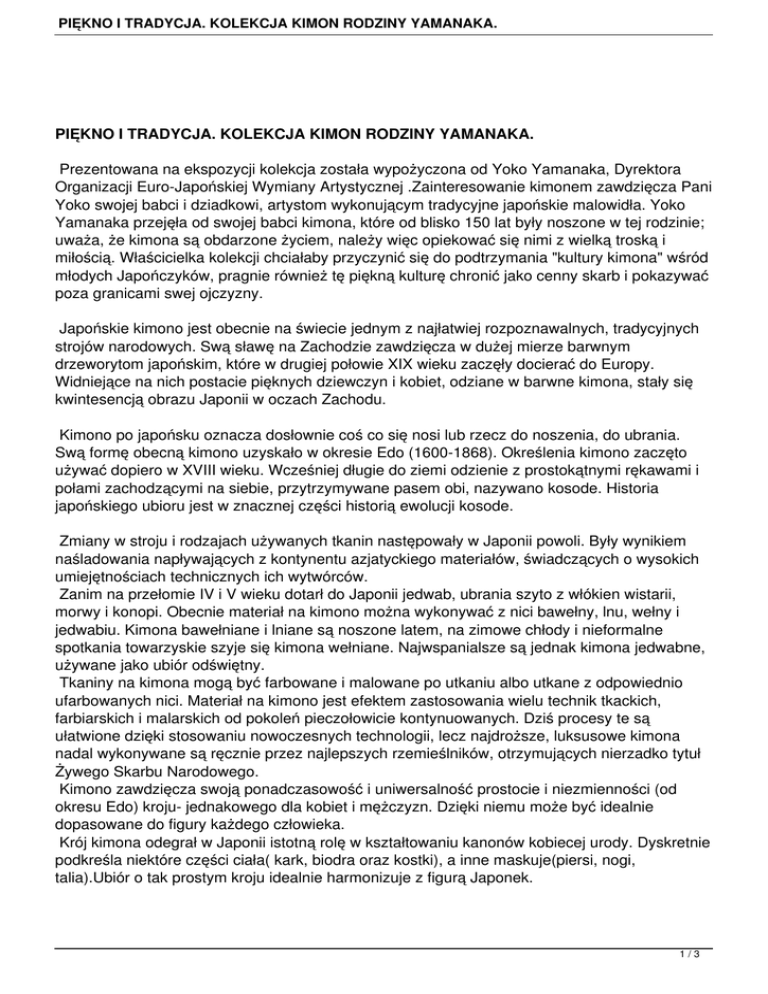 PIĘKNO I TRADYCJA. KOLEKCJA KIMON RODZINY YAMANAKA.