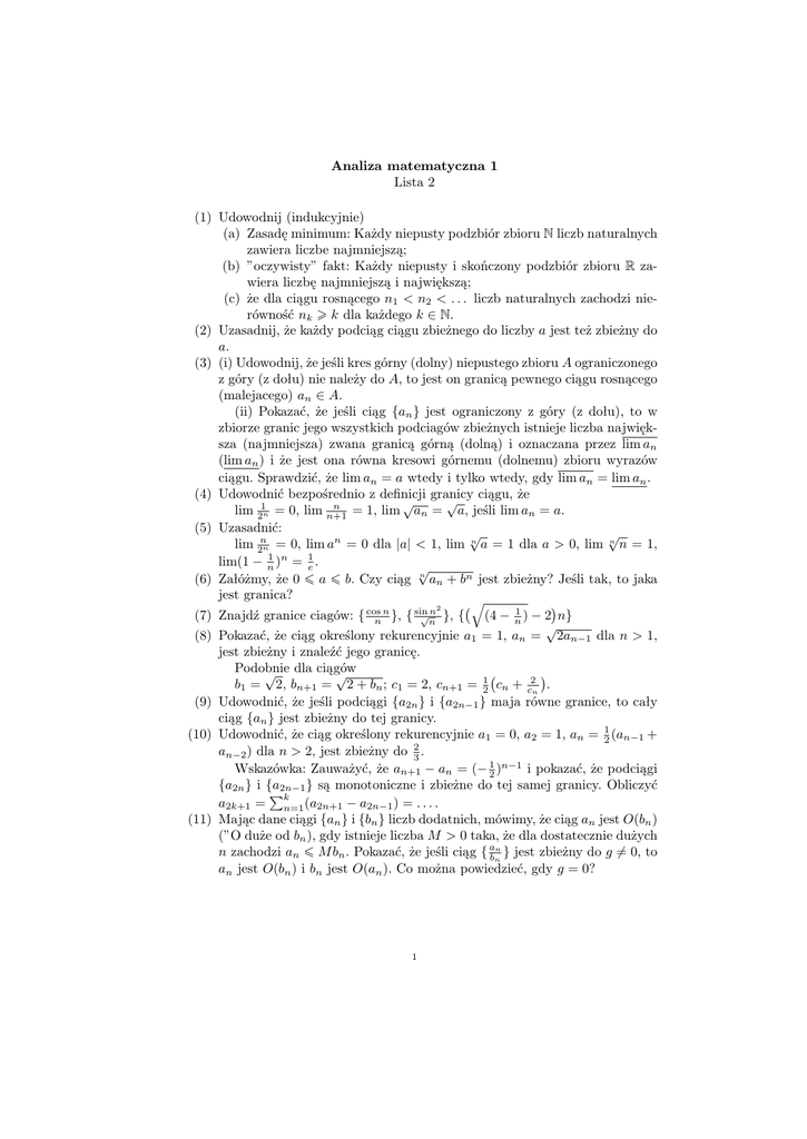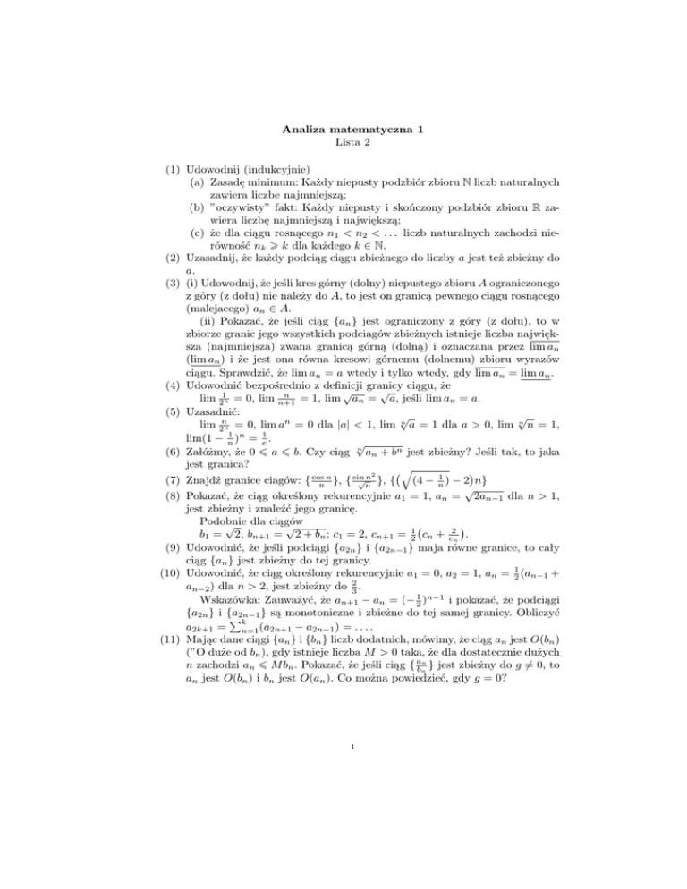 Analiza matematyczna 1 Lista 2 (1) Udowodnij (indukcyjnie) (a