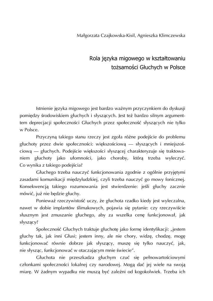 Rola języka migowego w kształtowaniu to samości Głuchych w Polsce