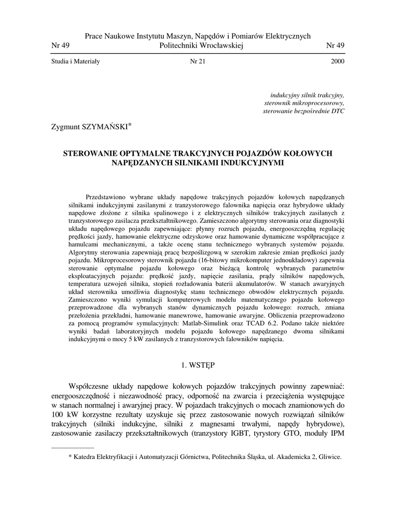 [6] SZYMAŃSKI Z., Sterowanie bezpośrednie DTC trakcyjnych układów napędowych zasilanych z