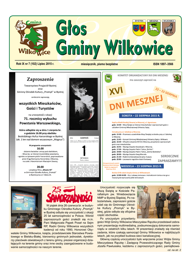 Rok IX nr 7 (102) Lipiec 2015 r. miesięcznik, pismo bezpłatne ISSN