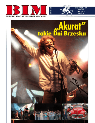 ISSN 1232-5678 Nr 07 (198) Rok XVII LIPIEC 2009 CENA 3,00 zł w tym 0% VAT BRZESKI MAGAZYN INFORMACYJNY „Akurat” takie Dni Brzeska TEKST SPONSOROWANY BRZESKI MAGAZYN INFORMACYJNY lipiec 2009 lipiec 2009 BRZESKI MAGAZYN INFORMACYJNY Trwają remonty dróg Użytkowników dróg cieszy zapewne fakt, że remontowana jest ulica Solskiego. Prace kosztować będą blisko 8 milionów złotych, z czego 2,5 miliona finansuje gmina, pozostałą część województwo małopolskie, które jest zarządcą drogi. Modernizacja obejmie odcinek od drogi krajowej nr 4 aż do dworca PKP. Realizację przewidziano na lata 2009-2010. Więcej na str. 7 W numerze: Gmina po wielkiej wodzie - 4 Czas inwestycji - 7 Starania o zjazd - 9 Wywiad z komendantem policji - 11 Drogi świętego Jakuba - 12 B I M Osiedlowe pikniki - 14,15 Dni Brzeska 2009 - 16 Zapraszamy do lektury Pod koniec czerwca Brzesko i kilka okolicznych wsi – szczególnie Jadowniki i Porębę Spytkowską - nawiedziły ogromne ulewy. Woda płynęła ulicami zalewając domy i pola. Straty po powodzi są dość znaczne – ucierpiało wiele domów i budynków gospodarczych, zniszczeniu uległy uprawy. Zniszczonych bądź uszkodzonych zostało wiele dróg, przepustów i mostków. Teraz trwa usuwanie szkód, samorząd zaś stara się o pozyskanie funduszy na ten cel. Więcej na ten temat w tekście „Gmina po wielkiej wodzie”. Dni Brzeska i Święto Samorządu to dwie duże imprezy, jakie odbyły się w Brzesku w ciągu ostatnich tygodni. Zapraszamy Czytelników do przeczytania obszernych relacji z tych wydarzeń. Przedstawiamy Państwu także propo- zycje przygotowane przez Urząd Miejski i instytucje z nim współpracujące, na tegoroczne wakacje. Będzie się działo sporo. Jeżeli dopisze pogoda w każdy weekend obywać się będą imprezy. Więcej w tekście „Wakacje w Brzesku”. Cieszą zasługi młodych brzeszczan. Wojtek Wojdak po raz kolejny sięgnął po złoto, Jakub Okrzesa wywalczył diamentowy indeks Akademii Górniczo-Hutniczej. Przedstawiamy także Państwu obszerne relacje z wydarzeń sportowych. Szczególnej uwadze Czytelników polecam tekst „Jak dawniej żyło się w Brzesku” napisany na podstawie kronik Jana Burlikowskiego. Zapraszam do lektury. Zofia Sitarz. UWAGA! NOWY ADRES E-MAILOWY REDAKCJI BIM: [email protected] Wielkie Święto Samorządu - 21 Czar starych samochodów - 24 Jak dawniej żyło się w Brzesku - 26 Łatwe podatki - 27 Wakacje w Brzesku - 29 Pamięci Józefa Wojciechowskiego - 30 Codziennie biegiem do pracy - 31 Puchar dla Krakowa - 33 Nakład 700 egz. Wydawca: Urząd Miejski w Brzesku; www.brzesko.pl Dyżury w redakcji: pn.-pt. w godz. 8.30-15.30. Redaguje zespół: Marek Kotfis, Zofia Sitarz - redaktor naczelny. Adres: 32-800 Brzesko, ul. Głowackiego 51, pok. 12, tel. (14) 68-63-100, wew. 152 Redakcja nie zwraca materiałów nie zamówionych oraz zastrzega sobie prawo do skrótów i zmiany tytułów. Archiwalne numery BIM do nabycia w redakcji. Za treść ogłoszeń redakcja nie bierze odpowiedzialności. Skład i druk: Drukarnia PRINTGRAPH, Brzesko ul. A. Mickiewicza 19. Tel. 014 663 0750, www.printgraph.pl O TYM SIĘ MÓWI BRZESKI MAGAZYN INFORMACYJNY lipiec 2009 Gmina po wielkiej wodzie Strażacy ochotnicy z Jadownik kilkanaście razy dziennie wzywani byli do wypompowywania wody z piwnic i do usuwania innych szkód wywoływanych przez opady deszczu, jakie nawiedziły gminę w dniach 21 – 23 czerwca. -Najtragiczniejsza sytuacja była na terenach bezpośrednio sąsiadujących z potokiem Grodna, ale pomagaliśmy także mieszkańcom w Brzesku i Porębie Spytkowskiej – opowiada prezes jadownickiej OSP, Adam Cebula. Poniedziałek 22 czerwca był pracowity również dla strażaków działających na terenie Poręby Spytkowskiej. Dochodziła północ, kiedy zawyły strażackie syreny. Chyba każdy druh doskonale zdawał sobie sprawę, że tym razem na pewno nie jest to wezwanie do pożaru, tylko do akcji związanej z potężną nawałnicą. Jakiekolwiek wątpliwości rozwiał dyspozytor, który rzeczowo oznajmił, że piwnice wielu miejscowych zabudowań toną w wodzie, która wdzierała się wszelkimi dostępnymi kanałami. Na pomoc powodzianom ruszyły natychmiast wozy bojowe jednostki OSP w Porębie Spytkowskiej i zawodowi strażacy z Brzeska. Najbardziej zagrożone były tereny przy ulicach Granicznej, św. Bartłomieja i przy Kasztelana Spytka, gdzie mieści się między innymi budynek szkoły podstawowej. Walka z żywiołem trwała do późnych godzin nocnych, ale już wczes- nym ranem następnego dnia trzeba było wypompowywać wodę z terenu porębskiego przedszkola. Powalone drzewa, zerwane drogi Żywioł szalał nadal, toteż kolejny alarm postawił strażaków na nogi już około trzeciej popołudniu. Tym razem pomocy oczekiwano w pobliskim Okocimiu, gdzie przy Cesarskim Szlaku zatopiona została piwnica jednego z do- mów. Nie minęło kilka godzin, a pomocy zaczęto wzywać z ulicy Bocheńskiej, przy której szalejąca woda zatkała jeden z przepustów, co groziło rozprzestrzenieniem się żywiołu na okoliczne domostwa. To była ostatnia tego dnia akcja ratunkowa, ale na tym problemy się nie skończyły. Kolejnego dnia strażacy zostali postawieni na nogi już o świcie. Tym razem odebrano sygnał o powalonym przez nawałnice drzewie, które zatarasowało drogę w ciągu ulicy św. Bartłomieja. Wieczorem ponowny alarm, tym razem woda dostała się do jednej z posesji przy Kasztelana Spytka. Wreszcie nastąpił względny spokój i sytuacja została opanowana. - W ciągu tego jednego tygodnia odnotowaliśmy 220 akcji związanych z usuwaniem skutków powodzi – relacjonuje komendant powiatowy PSP w Brzesku Dariusz Pęcak – Obfite opady deszczu i gwałtowne burze spowodowały w wielu rejonach spore straty. We wszystkich działaniach uczestniczyły zarówno zastępy JRG jak i jednostki OSP z terenu powiatu. Najczęściej uczestniczyliśmy w wypompowywaniu wody z budynków i piwnic, usuw