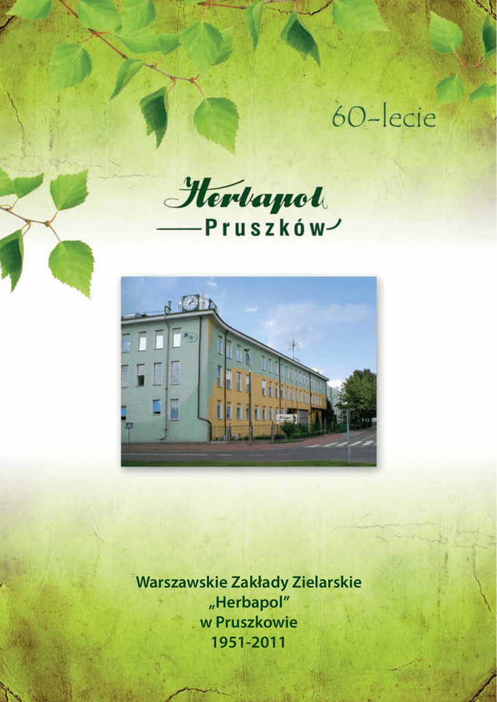 Warszawskie Zakłady Zielarskie „Herbapol” w Pruszkowie 1951-2011 Nagrody 1. 2. 3. 1. 2001, Złoty Lek, Saponarex 2. 2008, Eko-Laur Konsumenta, za Fito-Mix 3. 2008, Medal Europejski Business Centre Club 4. 2007, Medal Producenta Leków, kompleksowa oferta dla aptek, Czasopisma aptekarskie 5. 2003, Złoty Laur z listem gratulacyjnym Prezydenta RP 6. 2003, Hermes Eurodialog 7. 1997, Ziołowy Oskar, Debelizyna i Fitolizyna oraz 1998 za Neonormacol 8. 2004, 2008, Liderzy Eksportu 9. 2002, Ziołowy Oskar – Pectosol; 2005, Ziołowy Oskar – Fito-Mix 10. 2002, Europrodukt 11. 2004, Lider Eksportu w kategorii Udział w Eksporcie 12. 1997, Drzewko Życia za „Bliżej Zdrowia, Bliżej Natury”, Tramp, Calenfa, Herbadont B, Ziołowa (pasta do zębów) 13. 2007, URBS NOVA - nagroda Prezydenta Miasta Pruszkowa za rozwój gospodarczy 14. 2007, Eksport - Import, Fitolizyna 15. 2009, Stowarzyszenie Eksporterów Polskich, Nagroda: Wybitny Eksporter 2009 4. 5. 6. 7. 8. 9. 10. 11. 13. 12. 14. 15. Szanowni Państwo, Koleżanki i Koledz y, – Czuję się wyjątkowo dumny i zaszcz ycony tym, że właśnie w czasie, kiedy kieruję Warszawskimi Zakładami Zielarskimi „Herbapol” w Pruszkowie, urocz yście obchodzimy jubileusz 60-lecia powstania firmy. Każdy prz yzna, że dzisiaj taka rocznica to jednak niecodzienne wydarzenie. I nie tylko dlatego, że w Polsce jest coraz mniej zakładów z taką imponującą metryką. Doczekać sześćdziesiątki w tych czasach - to jest naprawdę wielkie wydarzenie. A dokładając do tego fakt, że jest to całkowicie polska firma i że ma się całkiem dobrze - ręce same składają się do oklasków. Z tej okaz ji chciałbym jakoś specjalnie uhonorować wsz ystkich nasz ych pracowników. Wsz ystkich, cz yli tych obecnie zatrudnionych, ale także nasz ych seniorów, którz y korz ystają z zasłużonych emerytur. Najprościej byłoby każdemu z osobna powiedzieć zwyczajnie „dziękuję”. Za sześćdziesiąt minionych lat, za pasję i poświęcenie, za dobrą pracę, za ciekawe pomysły, za wytrwałość w dniach kryz ysu i za uśmiech, kiedy szło lepiej. Wsz yscy – cała dzisiejsza załoga i byli pracownicy - nie tylko tu w Pruszkowie, ale także w zakładzie w Strachówku, zasłuż yli na szacunek i wyraz y uznania. Nie wypada także zapomnieć o nasz ych kooperantach, którz y również mają swój udział w kreowaniu tak poz ytywnego wizerunku zakładu. Wsz ystkim Państwu składam wyraz y najwyższego uszanowania i podziękowania. Jubileusz Herbapolu wiąże się jednocześnie z inną, jeszcze bardziej okrągłą i zdumiewającą rocznicą. Prz ywołuję w tym miejscu naszą słynną Fitoliz ynę, która od pięćdziesięciu lat jest obecna na krajowym rynku. Powiedzieć w tym miejscu o niecodziennym wydarzeniu - byłoby za skromnie. Dodać, że to nieprawdopodobny sukces - to za mało. Aż trudno w to uwierz yć, że te nasze małe tubki z niepozorną zawartością, tak cenione przez pacjentów i chętnie zalecane przez lekarz y, są w naszej ofercie gwiazdą pierwszego blasku. Wiedzą o tym również odbiorcy zza wschodniej granicy, którz y najwyraźniej pokochali Fitoliz ynę wielką miłością i są jej wierni od wielu, wielu lat. Tak znaczące jubileusze zawsze wywołują wspomnienia i porównania z przeszłością. Najkrócej rzecz ujmując trzeba powiedzieć, że pruszkowski „Herbapol” w roku 2011 w nicz ym nie prz ypomina tego z roku 1951. To jest wprawdzie ten sam zakład, ale przecież nie taki sam. Przez te wsz ystkie minione lata z małej fabryczki przekształcił się w spory zakład z ugruntowaną poz ycją w branż y i stale powiększającą się rzeszą klientów. Potwierdzają to chociażby liczne nagrody i wyróżnienia, których imponująca kolekcja stale się nam powiększa. Niezbędne, a prz y tym wyjątkowo kosztowne inwestycje sprawiły, że prz y ul. Ołówkowej nr 54 w Pruszkowie działa zakład, który potrafił pokonać niebez pieczne zakręty i odnaleźć się w nowej rzecz ywistości ekonomicznej. Nowatorskie pomysły, nowe receptury i atrakcyjne produkty pokazują nasz zakład w zupełnie nowym świetle. Dzisiaj jesteśmy znani i szanowani. Nawet nasi konkurenci wyrażają się o nas z szacunkiem. Znamy tu wsz yscy swoją wartość i swoje możliwości. Proponujemy klientom ofertę wnikliwie przemyślaną, dobrze prz ygotowaną i starannie wykonaną ze specjalnie wyselekcjonowanych ziół najwyższej jakości. Sześćdziesięciolecie Zakładów jest także dobrą okaz ją do postawienia pytania o naszą prz yszłość. Dla nikogo już chyba nie jest tajemnicą, że tematem wiodącym jest realizowany proces prywatyzacyjny. Dzisiaj za wcześnie wprawdzie na szczegóły, ponieważ nie zapadły w tej kwestii żadne ostateczne ustalenia, ale mam wewnętrzne przekonanie, że na tej drodze nic złego się nie stanie ani zakładowi, ani jego pracownikom w bliskiej i dalekiej prz yszłości. Prywatyzacja to szansa na dalsz y rozwój i umocnienie naszej poz ycji rynkowej. Najważniejsze jest to, że Warszawskie Zakłady Zielarskie „Herbapol” w swojej wieloletniej historii wypracowały spory kapitał i zdobyły znaczące miejsce na rynku. Bez wątpienia pozwala to optymistycznie patrzeć w prz yszłość. Bądźmy dumni z tego, co udalo się nam zrobić i zbudować. Krz ysztof Pawlak Dyrektor WZZ „Herbapol” w Pruszkowie 1 To już sześćdziesiąt lat... Dosłownie w kilka tygodni po wyzwoleniu Warszawy – w lutym 1945 roku – uruchomiona zostaje w Pruszkowie fabryka Farmaceutyczno-Chemiczna Adolf Gąsecki i Synowie S.A. Zatrudniająca wówczas 52 robotników firma dostarczała na rynek podstawowe leki. Przed wojną był to znany, nie tylko w Polsce, zakład aptekarza Adolfa Gąseckiego z ul. Belwederskiej w Warszawie. Tu właśnie produkowano wówczas słynne proszki „z kogutkiem”, syrop tonizujący i wiele innych specyfików. W Pruszkowie natomiast miał powstać zakład, w którym A. Gąsecki planował uruchom