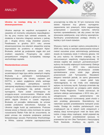 ANALIZY Ukraina na rozstaju dróg cz. 1 - umowa stowarzyszeniowa Ukraina aspiruje do wspólnot europejskich w zasadzie od momentu odzyskania niepodległości. Do tej pory można było odnieść wrażenie, że działania w kierunku integracji zarówno z jednej, jak i drugiej strony mają charakter pozorny. Parafowana w grudniu 2011 roku umowa stowarzyszeniowa ma zdaniem ekspertów szansę doprowadzić do przełomu w relacjach KijówBruksela. Jednak jej podpisanie ciągle stoi pod znakiem zapytania. Przyjrzyjmy się zatem perspektywom integracji europejskiej naszego wschodniego sąsiada. Niestandardowa umowa Umowa Ukraina-UE wykracza poza ramy wcześniejszych tego typu aktów zawartych między Brukselą a państwami kandydującymi. Najkorzystniejszym dla Ukrainy zapisem jest DCFTA, a zatem pogłębiona strefa wolnego handlu, otwierająca perspektywy szeroko zakrojonej współpracy między obiema stronami. W parze z przywilejami idą jednak również wymagania. Kijów został zobowiązany do przyjęcia acquis communautaire. Właśnie strefa wolnego handlu była jednym z głównych celów, do jakich dążyła Ukraina w czasie negocjacji. Bruksela od początku deklarowała, że umowa została podpisana warunkowo. Sytuacja na Ukrainie ciągle budzi jej zastrzeżenia. Podczas lutowej wizyty w Kijowie unijny komisarz do spraw rozszerzenia Štefan Füle dał do zrozumienia, że jeżeli umowa nie zostanie podpisana podczas listopadowego szczytu Partnerstwa Wschodniego w Wilnie, szansa zostanie zaprzepaszczona przynajmniej na kilka lat. W tym momencie Unia stawia Kijowowi trzy główne wymagania: zapewnienie ram prawnych, które zagwarantują przejrzystość i uczciwość wyborów, reforma wymiaru sprawiedliwości, tak aby prawo nie było stosowane selektywnie, oraz reformy wewnętrzne. Spróbujmy przeanalizować postępy Ukrainy w każdej z tych trzech dziedzin. Wszyscy mamy w pamięci wybory prezydenckie z 2004 roku, kiedy to wskutek zastosowania różnych metod oszustwa przez administrację państwową doszło do kradzieży około 3 milionów głosów. Od tej pory wybory na Ukrainie znajdują się na cenzurowanym wspólnoty międzynarodowej. W okresie rządów tak zwanych „pomarańczowych” wybory nie budziły większych kontrowersji. Elekcja prezydencka z 2010 roku zakończona zwycięstwem Wiktora Janukowycza została oprotestowana przez sztab jego głównej przeciwniczki Julii Tymoszenko. Niezależni eksperci twierdzili jednak, że samo głosowanie było raczej uczciwe i nawet jeżeli były niedociągnięcia, to nie miały one większego wpływu na końcowy wynik. Sytuacja zmieniała się jednak na niekorzyść po przejęciu pełni władzy przez Partię Regionów. Trzeba zaznaczyć, że zarówno elekcja samorządowa z 2010 roku, jak i ubiegłoroczne wybory parlamentarne nie wzbudziły większych kontrowersji, jeżeli chodzi o sam przebieg głosowania. Skandaliczny był natomiast sposób przedstawiania kampanii przez media. Dostęp do mediów państwowych oraz znajdujących się w rękach osób związanych z władzą stacji komercyjnych mieli de facto tylko ludzie z kręgu ekipy rządzącej. Jeżeli pojawiał się w tych mediach przedstawiciel opozycji, to przeważnie był nim Oles Tianhybok z faszyzującej Partii Swoboda. Analitycy są zgodni, że 1 ANALIZY lansowanie Tiahnyboka miało służyć dyskredytowaniu opozycji jako groźnych nacjonalistów i faszystów. Dlatego też podzielić należy pogląd, że obserwując ukraińskie wybory trzeba przyjrzeć się nie tylko samej procedurze głosowania, ale także kampanii. Bruksela nalega na uchwalenie przez Ukrainę nowego kodeksu wyborczego. Nie ulega jednak wątpliwości, że kluczowe znaczenie będą mieć nie regulacje kodeksowe, ale sposób, w jaki zostaną w praktyce przeprowadzone wybory prezydenckie w 2015 roku, zwłaszcza w sytuacji, gdy administracji Janukowycza zagrozi utrata władzy. Kolejną kwestią jest wybiórcze stosowanie prawa. Jak wiemy, po przejęciu władzy przez Partię Regionów doszło do aresztowania kilku członków gabinetu Julii Tymoszenko. Najbardziej znanymi postaciami, które trafiły za kratki, była sama była pani premier oraz minister spraw wewnętrznych w jej rządzie Jurij Łucenko. Nie ulega wątpliwości, że to przede wszystkim sprawa Julii Tymoszenko jest kością niezgody między Brukselą a Kijowem. Przez wiele miesięcy administracja Janukowycza pozostawała w kwestii Julii Tymoszenko nieugięta. Co więcej, wszczęto przeciwko niej nowe postępowania karne, przy których maksymalny wymiar kary to dożywotnie pozbawienie wolności. Jednak po lutowym spotkaniu prezydenta Janukowycza z prezydentami Polski Bronisławem Komorowskim i Słowacji Ivanem Gasparowiczem pojawiły się głosy, że ukraiński przywódca obiecał zwolnienie Łucenki oraz polepszenie warunków odbywania kary przez Tymoszenko. I faktycznie w kwietniu Łucenko opuścił więzienie. Wydaje się, że prezydent liczył, że tym gestem zadowoli Brukselę i doprowadzi do odblokowania procesu ratyfikacji umowy. UE ciągle nalega jednak w kwestii Julii Tymoszenko i daje do zrozumienia, że bez rozwiązania tej kwestii sprawa umowy nie posunie się do przodu. Nie do końca sprawdzone wydają się pojawiające się w mediach spekulacje, że sprawa zostanie rozwiązana poprzez zgodę na wyjazd byłej premier na leczenie do Niemiec. Póki nie będzie jasnego stanowiska władz Ukrainy, należy powstrzymać się z prognozowaniem scenariuszy. Tym niemniej sprawa byłej pani premier jest dziś bliższa rozwiązania niż parę miesięcy temu. Na korzyść Julii Tymoszenko działa wyrok Europejskiego Trybunału Praw Człowieka, który co prawda nie daje wprost podstaw do jej zwolnienia, ale uznając tymczasowe aresztowanie za bezprawne, stanowi duży problem dla władz w Kijowie. Czas pokaże również, na ile poważnie należy traktować podjęte przez ukraińskie władze zmiany instytucjonalne, jak na przykład nowy kodeks postępowania karnego.