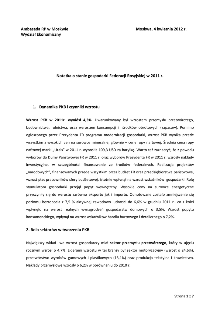 Notatka o stanie gospodarki Federacji Rosyjskiej w 2011 r -web