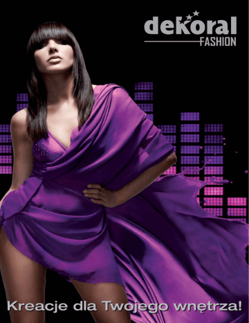 Dekoral w gronie Superbrands Superbrands to elitarne i międzynarodowe grono marek cieszących się największym uznaniem wśród Klientów. To przede wszystkim one wytyczają nowe trendy oraz tworzą innowacyjne produkty. Decyzję o tym, kto zostanie Superbrand każdego roku podejmują cenieni eksperci, a także sami konsumenci, głosujący na ulubione marki. Jednym z Superbrands jest właśnie marka Dekoral! DEKORAL PPG Deco Polska Sp. z o.o., ul. Kwidzyńska 8, 51-416 Wrocław Bezpłatna infolinia: 800 11 33 11, [email protected], www.dekoralfashion.pl, www.dekoral.pl 33/2013 Dekoral w każdym sezonie stara się zaskoczyć swych Klientów nowymi pomysłami. Z jednej strony piękne, modne barwy oraz coraz lepsze właściwości farb, z drugiej zaś współpraca ze sławnymi projektantami, innowacyjne rozwiązania ułatwiające wybór kolorów czy ekscytujące konkursy z atrakcyjnymi nagrodami – to wszystko sprawia, że Dekoral jest dziś najpopularniejszą marką farb w Polsce. Jest po prostu prawdziwym Superbrand! FASHION COLLECTION soczysta pomarańcza y w el o s z rm m ka za FASHION COLLECTION Cytrynowy tiul, muślinowy turkus, a może czerwień flamenco? Wybierz kolory, które na zawsze odmienią wnętrze i uczynią je niepowtarzalnym. Linia farb Fashion Collection otwiera przed Tobą krainę luksusu oraz światowych trendów mody. Ta oszałamiająca kompozycja barw jest dziełem słynnej projektantki, Evy Minge. Wyrafinowane odcienie spod znaku artystycznych inspiracji zmienią Twój dom w gustowne i ekskluzywne wnętrze. Wzorce kolorów wykonane techniką drukarską, należy traktować je poglądowo. Wymalowania dostępne w sklepach prowadzących sprzedaż farb Dekoral. FASHION COLLECTION limonkowa tafta s ło tweedowa zieleń zapach mchu ne c y zn l en monsunowa zieleń karmelowy zamsz czekofashion kawowy welur Wnętrze p omalow ano farb soczysta pomarańcza ą Fashio n Collec tion cy tr ynow y ti ul cytrynowy tiul Wzorce kolorów wykonane techniką drukarską, należy traktować je poglądowo. Wymalowania dostępne w sklepach prowadzących sprzedaż farb Dekoral. FASHION COLLECTION y w d o a nt r k a ar ż a am intuicja batystowy fiolet satynowy wrzos koronkowy róż piękno odwaga optymizm Wnętrze p omalow ekspresja ano farb ą Fashio n Collec aksamitny burgund tion żaka rdow y a marant, energia muślino w y turku s czerwień flamenco Wzorce kolorów wykonane techniką drukarską, należy traktować je poglądowo. Wymalowania dostępne w sklepach prowadzących sprzedaż farb Dekoral. FASHION COLLECTION muślinowy turkus jedwabny popiel y w so t łt a rafi a g intuicja blue jeans beżowy kaszmir harmonia Wnętrze p omalow ano farb szyfonowy beż ą Fashio n Collectio n blue jean s i sz yfon ow y beż natchnienie Wzorce kolorów wykonane techniką drukarską, należy traktować je poglądowo. Wymalowania dostępne w sklepach prowadzących sprzedaż farb Dekoral. colour & style aksamitny dotyk ew w i u su o p uk s l Kreuj przestrzeń kolorem! Wybierz nowoczesną emulsję Colour&Style i rozkochaj się w unikatowej palecie barw inspirowanych modą wprost ze światowych wybiegów. Poddaj się urokowi kolorów delikatnych niczym orientalny jedwab oraz odkryj siłę odważnych kontrastów. Bogata kolekcja prezentuje 30 niepowtarzalnych barw. Zasmakuj w królewskim przepychu i zaproś najnowsze trendy do Twojego domu: Glamour – Wyszukany styl i namiętny blask dla miłośników luksusu Eco – W zgodzie i harmonii z Matką Ziemią Loft – Surowość oraz piękno postindustrialnych przestrzeni Modern – Minimalizm i nowoczesność światowych metropolii New Orient – Magia egzotyki wprost z Dalekiego Wschodu colour & style kolekcja GLAMOUR Wytworny styl, namiętny blask i fantazyjne dekoracje. Kryształowe żyrandole, iskrzące się cekiny, miękkie plusze. W romantycznym tańcu kolorów i światła rozbudzają się zmysły i wirują emocje... zmysłowa perła miękki welur lodowe mohito namiętny wieczór Wzorce kolorów wykonane techniką drukarską, należy traktować je poglądowo. Wymalowania dostępne w sklepach prowadzących sprzedaż farb Dekoral. colour & style kolekcja ECO Z tęsknoty za swobodą wiatru, błękitem nieba i delikatnością płatków lnu. Klimat idealny dla osób ceniących harmonijne życie w zgodzie z naturą. szlachetna glinka kwiat bawełny wa a tr a o r s k m lniany zaułek naturalny piaskowiec hebanowy brąz colour & style kolekcja LOFT Intrygująca estetyka zaklęta w murach starych fabryk, opuszczonych magazynów i hal. Surowe aranżacje ujęte w wytworne ramy sztuki. Niezwykła przestrzeń dla ceniących niepowtarzalność. szklana tafla czystość bieli na lo a a yp g ł w ce bezmiar przestrzeni szczotkowana stal antracytowa struktura Wzorce kolorów wykonane techniką drukarską, należy traktować je poglądowo. Wymalowania dostępne w sklepach prowadzących sprzedaż farb Dekoral. colour & style kolekcja MODERN Elegancki minimalizm oraz wysoki komfort. W prostych i nowoczesnych wnętrzach dominuje atmosfera wielkich miast. Futurystyczna wizja dla ludzi sukcesu. elektryzujący oranż czysta forma na cz y r et oś ć omlekk e g światła neonów mineralna szarość wysokie obcasy colour & style kolekcja NEW ORIENT Egzotyczne, skąpane w słońcu barwy oraz bogactwo wzorów we wnętrzu. Wschodnie smaki i zapachy przynoszące ukojenie. Dla poszukiwaczy wewnętrznej równowagi. chiński jedwab pachnąca orchidea ek un y ł c a js z p o ge zapach orientu ogród japoński harmonijna zieleń Wzorce kolorów wykonane techniką drukarską, należy traktować je poglądowo. Wymalowania dostępne w sklepach prowadzących sprzedaż farb Dekoral. DIAMENTOWA KOLEKCJA Perły, złoto i srebro to kwintesencja dobrego smaku. Kunsztowne barwy ukryto w unikatowej linii farb dekoracyjnych Diamentowa Kolekcja. Zawarte w nich świetliste piękno rozbłyśnie teraz na Twoich ścianach. Dzięki połączeniu transparentnej emulsji z iskrzącymi się pigmentami na powi