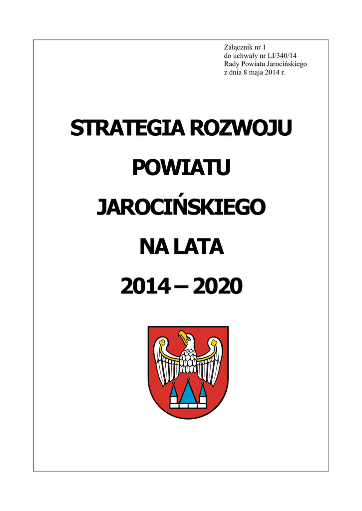 Załącznik nr 1 do uchwały nr LI/340/14 Rady Powiatu Jarocińskiego z dnia 8 maja 2014 r. STRATEGIA ROZWOJU POWIATU JAROCIŃSKIEGO NA LATA 2014 – 2020 Strategię opracował zespół powołany zarządzeniem Starosty Jarocińskiego nr 30/2013 z dnia 1 lipca 2013 zmienione zarządzeniem nr 43/2013 z dnia 21 października 2013 Przy współpracy ul. Petera Mansfelda 4 60-855 Poznań email: [email protected] Strategia Rozwoju Powiatu Jarocińskiego na lata 2014 – 2020 Spis treści: 1. WSTĘP _______________________________________________7 2. Raport stanu aktualnego Powiatu __________________________9 2.1 2.1.1 2.1.2 2.2 Wstęp _______________________________________________________________________ 10 Ogólna charakterystyka Powiatu __________________________________________________________________________ 10 Warunki naturalne, ochrona środowiska i jej stan ____________________________________________________________ 10 Analiza stanu obecnego _________________________________________________________ 15 2.2.1 Sytuacja demograficzna i społeczna Powiatu ________________________________________________________________ 15 2.2.2 Rynek pracy __________________________________________________________________________________________ 16 2.2.3 Gospodarka przestrzenna _______________________________________________________________________________ 21 2.2.4 Oświata i edukacja _____________________________________________________________________________________ 23 2.2.5 Kultura i sport ________________________________________________________________________________________ 25 2.2.6 Opieka zdrowotna _____________________________________________________________________________________ 30 2.2.7 Pomoc społeczna ______________________________________________________________________________________ 34 2.2.8 Bezpieczeństwo publiczne _______________________________________________________________________________ 36 2.2.9 Aktywność gospodarcza na terenie Powiatu _________________________________________________________________ 42 2.2.10 Zagraniczna współpraca JST _____________________________________________________________________________ 48 2.2.11 Infrastruktura techniczna ________________________________________________________________________________ 48 3. ANALIZA STRATEGICZNA POWIATU JAROCIŃSKIEGO __________50 3.1 Bilans strategiczny Powiatu Jarocińskiego ___________________________________________ 51 3.1.1 Bilans strategiczny w obszarze rozwoju społeczności lokalnej ___________________________________________________ 51 3.1.2 Bilans strategiczny w obszarze stanu środowiska _____________________________________________________________ 53 3.1.3 3.2 Bilans strategiczny w obszarze rozwoju gospodarczego ________________________________________________________ 54 Analiza potencjału rozwojowego Powiatu Jarocińskiego ________________________________ 56 3.2.1 Potencjał rozwojowy w obszarze rozwoju społeczności lokalnej _________________________________________________ 57 3.2.2 Potencjał rozwojowy w obszarze stanu środowiska ___________________________________________________________ 57 3.2.3 Potencjał rozwojowy w obszarze rozwoju gospodarczego ______________________________________________________ 58 4. WYBÓR STRATEGII POWIATU JAROCIŃSKIEGO ______________60 4.1 Zasady zrównoważonego rozwoju Powiatu Jarocińskiego _______________________________ 61 4.2 Analiza SWOT/TOWS Powiatu Jarocińskiego _________________________________________ 62 4.3 Misja Powiatu Jarocińskiego ______________________________________________________ 65 5. CELE STRATEGICZNE POWIATU JAROCIŃSKIEGO _____________67 5.1 Cele strategiczne ______________________________________________________________ 68 6. PROGRAMY OPERACYJNE _______________________________70 7. STRATEGIA POWIATU JAROCIŃSKIEGO A INNE DOKUMENTY STRATEGICZNE _________________________________________________83 7.1 Wstęp _______________________________________________________________________ 84 7.2 Strategia Rozwoju Kraju 2020 ____________________________________________________ 84 7.3 Strategia Rozwoju Województwa Wielkopolskiego ____________________________________ 84 3 Strategia Rozwoju Powiatu Jarocińskiego na lata 2014 – 2020 8. WDRAŻANIE STRATEGII ________________________________86 8.1 Metody wdrażania i monitorowania Strategii Rozwoju Powiatu Jarocińskiego na lata 20142020 _______________________________________________________________________ 87 8.2 Sposoby inicjowania współpracy między sektorem publicznym, prywatnym i organizacjami 8.3 Public relations Strategii Powiatu Jarocińskiego_______________________________________ 90 pozarządowymi _______________________________________________________________ 90 9. Załączniki ___________________________________________92 9.1 Bilans strategiczny i macierze SWOT/TOWS __________________________________________ 93 Spis tabel Tabela 1. Sytuacja demograficzna powiatu jarocińskiego na tle województwa wielkopolskiego w 2012 roku ......................................................................................................... 15 Tabela 2. Rynek pracy w powiecie w latach 2009-2012 ........................................................ 16 Tabela 3. Struktura wskaźnika bezrobocia w Powiecie w 2013 r. ............................................ 21 Tabela 4. Zasoby mieszkaniowe Powiatu w latach 2009-2012 ................................................ 22 Tabela 5. Personel i podmioty z zakresu ochrony zdrowia w powiecie w latach 2009-2012 ...... 33 Tabela 6. Przestępstwa w powiecie w latach 2008-2012 ........................................................ 36 Tabela 7. Przestępstwa w podziale na rodzaj ........................................................................ 37 Tabela 8. Zestawienie zbiorcze jednostek OSP ...................................................................... 38 Tabela 9. Porównanie ilości zdarzeń ..........................................................