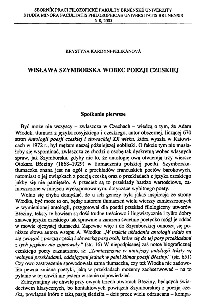 WISŁAWA SZYMBORSKA WOBEC POEZJI CZESKIEJ