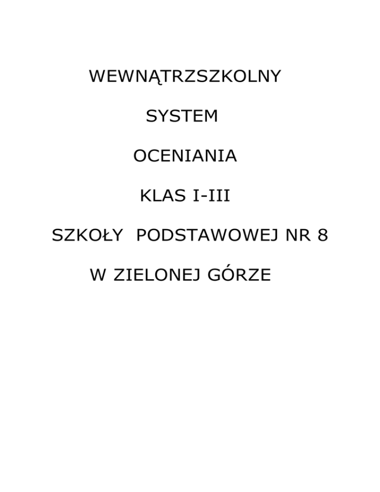 WEWNĄTRZSZKOLNY SYSTEM OCENIANIA KLAS I