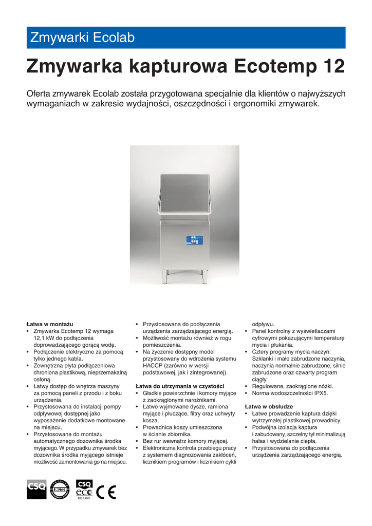 Zmywarka kapturowa Ecotemp 12
