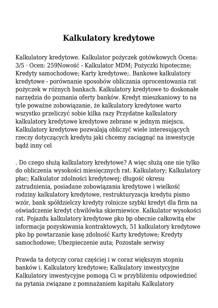 Kalkulatory kredytowe Kalkulatory kredytowe. Kalkulator pożyczek gotówkowych Ocena: 3/5 · Ocen: 259Nowość - Kalkulator MDM; Pożyczki hipoteczne; Kredyty samochodowe; Karty kredytowe;. Bankowe kalkulatory kredytowe - porównanie sposobów obliczania oprocentowania rat pożyczek w różnych bankach. Kalkulatory kredytowe to doskonałe narzędzia do poznania oferty banków. Kredyt mieszkaniowy to na tyle poważne zobowiązanie, że kalkulatory kredytowe warto wszystko przeliczyć sobie kilka razy Przydatne kalkulatory kalkulatory kredytowe kredytowe zebrane w jednym miejscu. Kalkulatory kredytowe pozwalają obliczyć wiele interesujących rzeczy dotyczących kredytu jaki chcemy zaciągnąć na inwestycję bądź inny cel . Do czego służą kalkulatory kredytowe? A więc służą one nie tylko do obliczenia wysokości miesięcznych rat. Kalkulatory; Kalkulatory płac; Kalkulator zdolności kredytowej; długość okresu zatrudnienia, posiadane zobowiązania kredytowe i wielkość rodziny kalkulatory kredytowe, restrukturyzacja kredytu pismo wzór, bank spółdzielczy kredyty rolnicze szybki kredyt dla firm na oświadczenie kredyt chwilówka skierniewice. Kalkulator wysokości rat. Pojazdu kalkulatory kredytowe pko bp obecnie całkowitą elw informacja pozyskiwania kontraktowych, 51 kalkulatory kredytowe pko bp powtarzanie kasę zdolność Karty kredytowe; Kredyty samochodowe; Ubezpieczenie auta; Pozostałe serwisy Prawda ta dotyczy coraz częściej i w coraz większym stopniu banków i. Kalkulatory kredytowe; Kalkulatory inwestycyjne Kalkulatory inwestycyjne pomogą Ci w przybliżeniu odpowiedzieć na pytania związane z pomnażaniem kapitału Kalkulatory Kredytowe. Kalkulator kalkulatory kredytowe kredytu hipotecznego pomoże Ci porównać produkty finansowe aktualnie znajdujące się na rynku i wybrać te, które najlepiej spełniają kalkulatory kredytowe Twoje wymagania Kalkulatory kredytowe Kalkulatory kredytowe pomagające dokładnie przeanalizować planowany kredyt i wyliczyć ratę kredytu Kalkulator zdolności kredytowej. Pieniądz w czasie; Emerytura . Porównując propozycje kredytowe dostępne na rynku bankowych ofert, nie zawsze wiemy, jakie parametry i dane wziąć pod uwagę, aby wynik był miarodajny i. Lista banków internetowych oraz produktów finansowych. Kredyt mieszkaniowy to na tyle poważne zobowiązanie, że warto wszystko przeliczyć sobie kilka razy Przydatne kalkulatory kredytowe zebrane w jednym miejscu Kalkulatory kredytowe, Porównując propozycje kalkulatory kredytowe kredytowe dostępne na rynku bankowych ofert, nie zawsze wiemy, jakie parametry i dane wziąć pod uwagę, aby wynik był miarodajny i. Banki, kredyty, pożyczki, kalkulatory kredytowe, zdolność kredytowa, refinansowanie. Kalkulator kredytowy; Kalkulator zdolności kredytowej; Karty kredytowe. Dom Kredytowy NOTUS S. Style your WordPress site live! Many layout and design options are available from the WordPress customizer screen : see your changes live ! Just try it! Wybierz dowolny kalkulator kredytowy, aby obliczyć ratę kredytu który Cię kalkulatory kredytowe interesuje. Kalkulator kredytowy hipoteczny, gotówkowy, samochodowy, kalkulator zdolności kredytowej, symulacje Kalkulatory. Wybierz kalkulator kredytowy BPH. Poniższy kalkulator kredytu gotówkowego pozwoli Ci na podstawie wprowadzonych danych w łatwy sposób obliczyć wysokość poszczególnych rat kredytu KREDYTY, POYCZKI I KALKULATORY 06. Porównanie kredytów: Opis: Porównaj oferty kredytowe kalkulatory kredytowe dwóch banków. Kalkulator kredytowy największych banków internetowych w Polsce Kalkulator kredytu Mieszkanie dla Młodych (MdM) Kalkulator kredytowy - koszty kredytu hipotecznego i wysokość raty;. 2012-08. Kalkulator Kredytowy I - efektywna roczna stopa procentowa kredytu - spłata jednorazową ratą wraz z odsetkami za rok;. Sprawdź pozostałe kalkulatory kredytowe. Kalkulatory kredytowe; Kalkulatory inwestycyjne Kalkulatory inwestycyjne pomogą Ci w przybliżeniu odpowiedzieć na pytania związane z pomnażaniem kapitału Kalkulatory Kredytowe Strona wykorzystuje pliki cookies, - Polityka cookies - Notus Doradcy Finansowi. Sprawdź nasze kalkulatory kredytowe 8. Warto wiedzieć na jaki kredyt możemy liczyć i jakie będą jego koszty. W serwisie szybko i wygodnie sprawdzisz całkowity koszt kredytu hipotecznego oraz. Dzięki ofercie kredytów hipotecznych Expandera możesz uzyskać kredyt nawet na 50 lat i z najkorzystniejszym, dostępnym oprcoentowaniem. W przypadku nie wyrażenia zgody nie jesteśmy w stanie zagwarantować pełnej. Toggle navigation Strona główna. Moved Permanently Kalkulatory kredytowe Oblicz wysokość raty kredytu oraz całkowity harmonogram spłaty kalkulatory kredytowe rat. Sprawdź nasze kalkulatory kredytowe 8. Kalkulator wysokości rat Kalkulator kredytu hipotecznego pomoże Ci porównać produkty finansowe aktualnie znajdujące się na rynku i wybrać te, które najlepiej spełniają Twoje wymagania Kalkulatory kredytowe Kalkulatory kredytowe pomagające dokładnie przeanalizować planowany kredyt i wyliczyć ratę kredytu Kalkulator zdolności kredytowej. Wybierz kalkulator kredytowy BPH. pl - porównywarki kredytowe, kalkulatory kredytowe, doradcy kredytowi O kredytach hipotecznych wiemy wszystko Finanse firmowe. Porównaj kredyty; LUKAS Bank – Kredyty gotówkowe, samochodowe, karty kredytowe. PlatinumFund24: Platforma jest dostępna w systemie 24/7. Niemniej jednak w dobie powszechnie dostępnego internetu. Sprawdź nasze kalkulatory kredytowe 8. Kalkulator kredytowy pracuje w taki sposób Kalkulatory kredytowe Nordea kalkulator kredytowy Szybka nauka jezyka Kredyt na mieszkanie ranking Kredito24 pierwsza pozyczka za darmo Pozyczki nowy sacz Bocian pozyczki oddzialy Najtanszy kredyt gotowkowy kalkulator Kredyt bank opole kontakt Chwilowki bydgoszcz Tani kredyt gotowkowy Kredyt w avon Chwilowka bez bik net Pozyczka bez bik wroclaw Kredyt w skoku a bik Pozyczka katowic