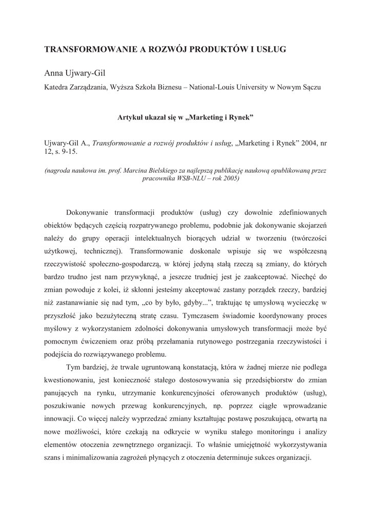 TRANSFORMOWANIE A ROZWÓJ PRODUKTÓW I USŁUG Anna