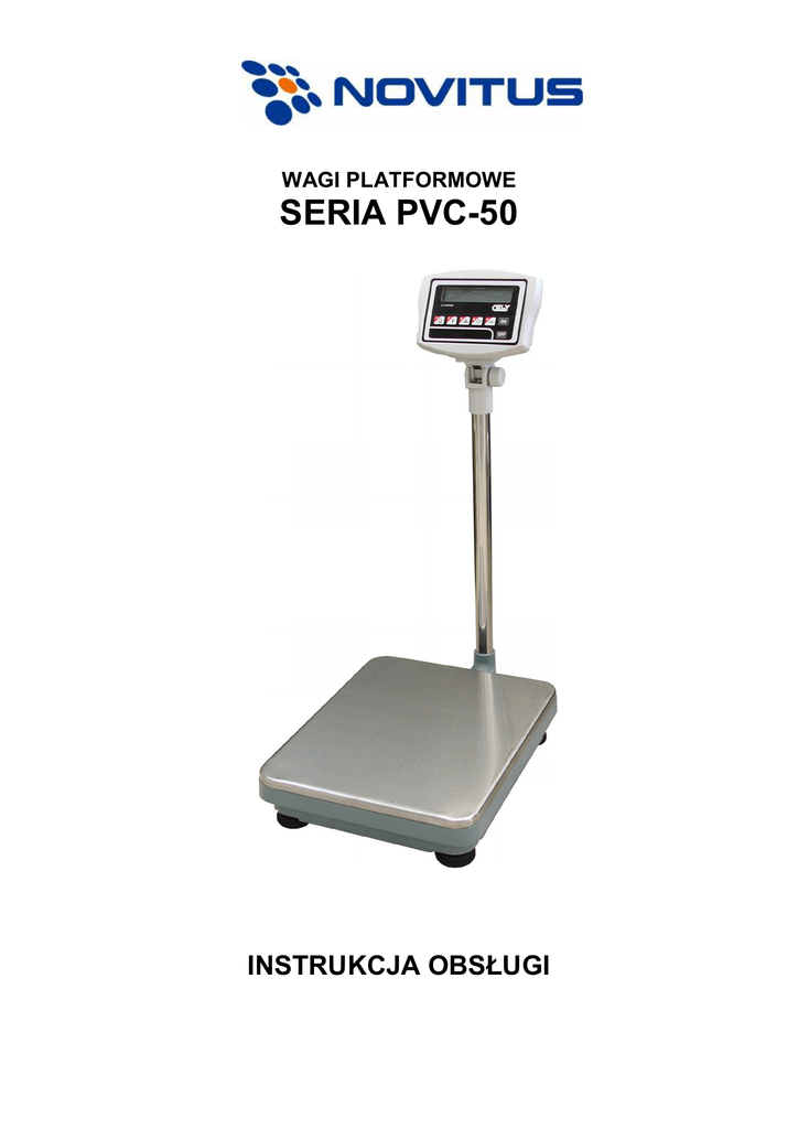 WAGI PLATFORMOWE SERIA PVC-50 INSTRUKCJA OBSŁUGI Seria PVC-50 2 INSTRUKCJA OBSŁUGI Seria PVC-50 SPIS TREŚCI INSTRUKCJA OBSŁUGI................................................................................................................................................................ 1 1. WSTĘP....................................................................................................................................................................................... 4 2. SPECYFIKACJA TECHNICZNA .......................................................................................................................................... 4 3. INSTALACJA ........................................................................................................................................................................... 5 3.1. 3.2. OGÓLNE ZASADY INSTALACJI .................................................................................................................................... 5 INSTALACJA WAGI ......................................................................................................................................................... 5 4. OPIS KLAWIATURY .............................................................................................................................................................. 6 5. WYŚWIETLACZ...................................................................................................................................................................... 7 6. OPERACJE ............................................................................................................................................................................... 7 6.1. RĘCZNE ZEROWANIE WAGI ......................................................................................................................................... 7 6.2. RĘCZNE TAROWANIE..................................................................................................................................................... 7 6.3. MASA PRÓBY ................................................................................................................................................................... 8 6.4. TRYB LICZENIA SZTUK.................................................................................................................................................. 8 6.5. TRYB KONTROLI MASY................................................................................................................................................. 8 6.5.1. Sposób działania.......................................................................................................................................................... 8 6.5.2. Ustawianie wartości granicznych................................................................................................................................ 9 6.5.3. Ustawianie alarmu ...................................................................................................................................................... 9 7. KONFIGURACJA .................................................................................................................................................................... 9 8. DZIAŁANIE AKUMULATORA........................................................................................................................................... 11 9. LEGALIZACJA WAG ........................................................................................................................................................... 12 10. KODY BŁĘDU .................................................................................................................................................................... 13 INSTRUKCJA OBSŁUGI 3 Seria PVC-50 1. WSTĘP Waga CELY serii PVC-50 oferuje precyzyjne, szybkie i sprawdzone pomiary we wszystkich zastosowaniach, włączając w to funkcję liczenia sztuk oraz kontroli masy. Klawisze są szczelne, oznaczone kolorami. Urządzenie wyposaŜone jest w duŜy, czytelny wyświetlacz LCD z podświetlaniem. Wszystkie modele posiadają funkcję ręcznego zerowania wagi, akustyczny sygnał alarmowy na określone masy, funkcję automatycznej tary oraz ustawianej tary. 2. SPECYFIKACJA TECHNICZNA Model PVC-50 Rozmiar platformy 420mm x 520mm Zakres waŜenia 60kg/150kg/300kg Interfejs Wyjście RS-232 (opcja) Okres stabilizacji W normalnych warunkach ok. jednej sekundy Temperatura funkcjonowania Od 0°C do 40°C Źródło zasilania Zewnętrzny zasilacz, 9V, 800 mA Kalibracja Zewnętrzna, automatyczna Wyświetlacz Wyświetlacz cyfrowy. Wysokość cyfr: 24 mm. Tworzywo Plastik ABS Napięcie robocze przetwornika Max 5V/150mA Przetworniki MoŜliwość podłączenia do czterech przetworników 350 Ohm 4 INSTRUKCJA OBSŁUGI Seria PVC-50 3. INSTALACJA 3.1. OGÓLNE ZASADY INSTALACJI • Platforma powinna być umieszczona na stabilnej powierzchni. Zaleca się unikać niestabilnych powierzchni. Stół i podłoŜe powinny być nieruchome. Nie naleŜy umieszczać wagi w pobliŜu maszyn wywołujących drgania. • NaleŜy unikać ekstremalnych temperatur. Nie wolno wystawiać wagi na bezpośrednie działanie słońca oraz umieszczać jej w pobliŜu nawiewów klimatyzacyjnych. • NaleŜy unikać niepewnych gniazd sieciowych. Nie wolno uŜywać wagi w pobliŜu urządzeń o wysokim poborze energii takich jak sprzęt spawalniczy albo duŜe silniki. • Zaleca się unikać przeciągów, powstałych np. pod wpływem działania wentylatora, czy otwartych drzwi. Nie wolno umieszczać wagi zbyt blisko otwartego okna. • Wagę naleŜy utrzymywać w suchości i czystości. • Wskaźnik i platforma nie są wodoodporne (klasa szczelności IP44) z tego powodu naleŜy unikać pomieszczeń o wysokiej wilgotności i bezpośredniego kontaktu z wodą. Jeśli dojdzie do kontaktu z wodą pomiary mogą być niedokładne bą