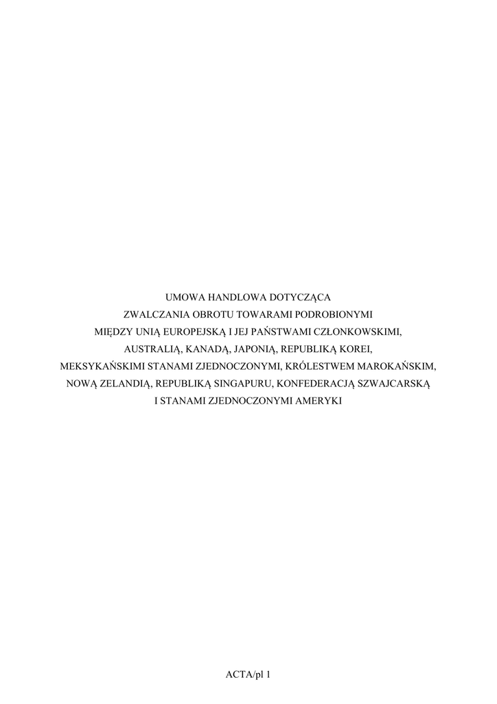 ACTA/pl 1 UMOWA HANDLOWA DOTYCZĄCA ZWALCZANIA