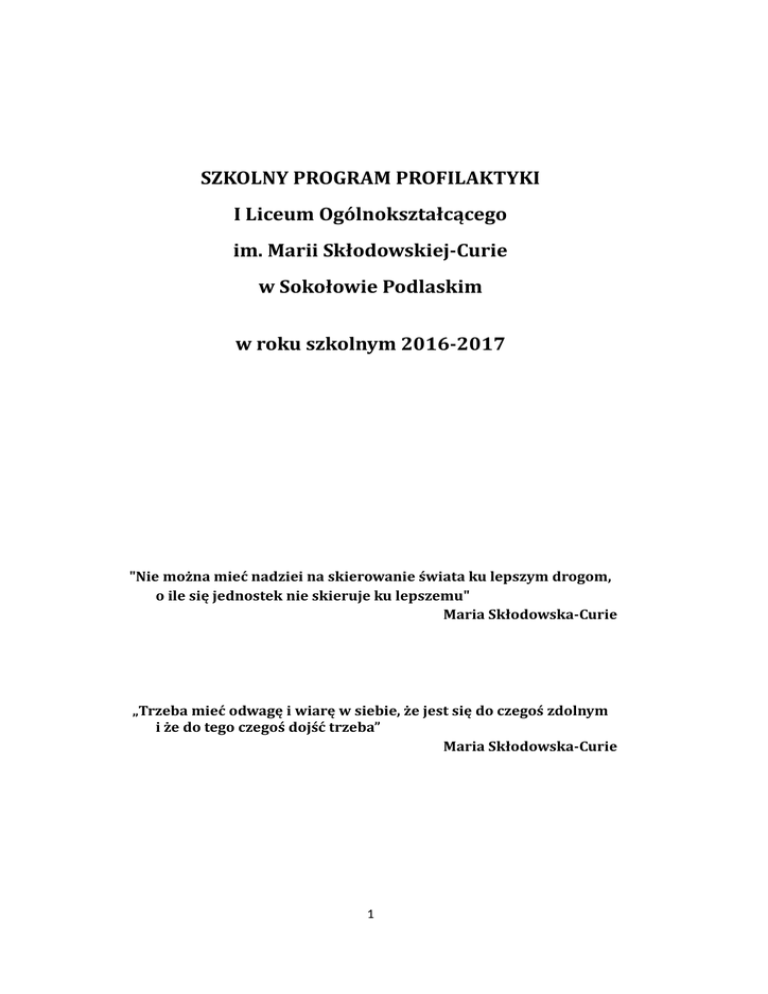 SZKOLNY PROGRAM PROFILAKTYKI I Liceum