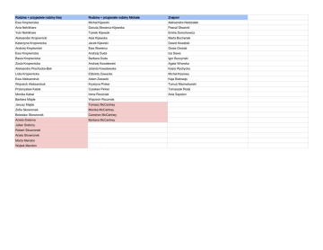 Rodzina + przyjaciele rodziny Ewy Rodzina + przyjaciele rodziny Michała Znajomi Ewa Kropiwnicka Michał Kijewski Aleksandra Niedziałek Ania Nehikhare Danuta Skwiercz-Kijewska Pascal Głowicki Yuki Nehikhare Tomek Kijewski Emilia Dorochowicz Aleksander Kropiwnicki Asia Kijewska Marta Bochenek Katarzyna Kropiwnicka Jacek Kijewski Dawid Kowalski Andrzej Kropiwnicki Ewa Skwiercz Gosia Grostal Ewa Kropiwnicka Andrzej Duda Iza Sawa Basia Kropiwnicka Barbara Duda Igor Buczynski Zosia Kropiwnicka Andrzej Kowalewski Agata Wronska Aleksandra Piechocka-Bek Jolanta Kowalewska Kasia Wydrycka Lidia Kropiwnicka Elżbieta Zawacka Michał Kasiowy Ewa Aleksandruk Adam Zawacki Kaja Białowąs Wojciech Aleksandruk Krystyna Pinker Tomuś Marmołowski Przemysław Kabat Czesław Pinker Tomaszek Roda Monika Kabat Irena Roczniak Ania Szpoton Barbara Majde Wojciech Roczniak Janusz Majde Tomasz McCartney Zofia Skowronek Monika McCartney Bolesław Skowronek Cameron McCartney Aniela Srebrna Barbara McCartney Julian Srebrny Robert Skowronek Aneta Skowronek Marta Mendon Wojtek Mendon