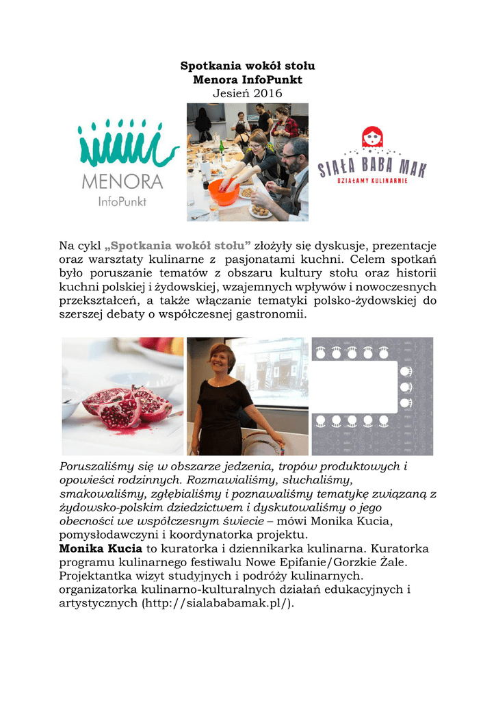Spotkania wokół stołu Menora InfoPunkt Jesień 2016 Na cykl