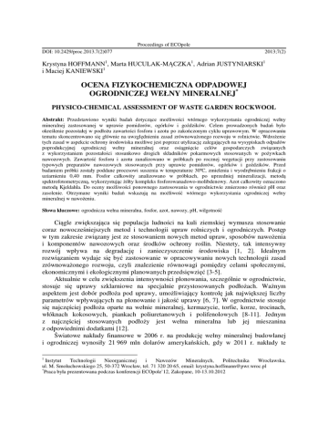 ocena fizykochemiczna odpadowej ogrodniczej wełny mineralnej