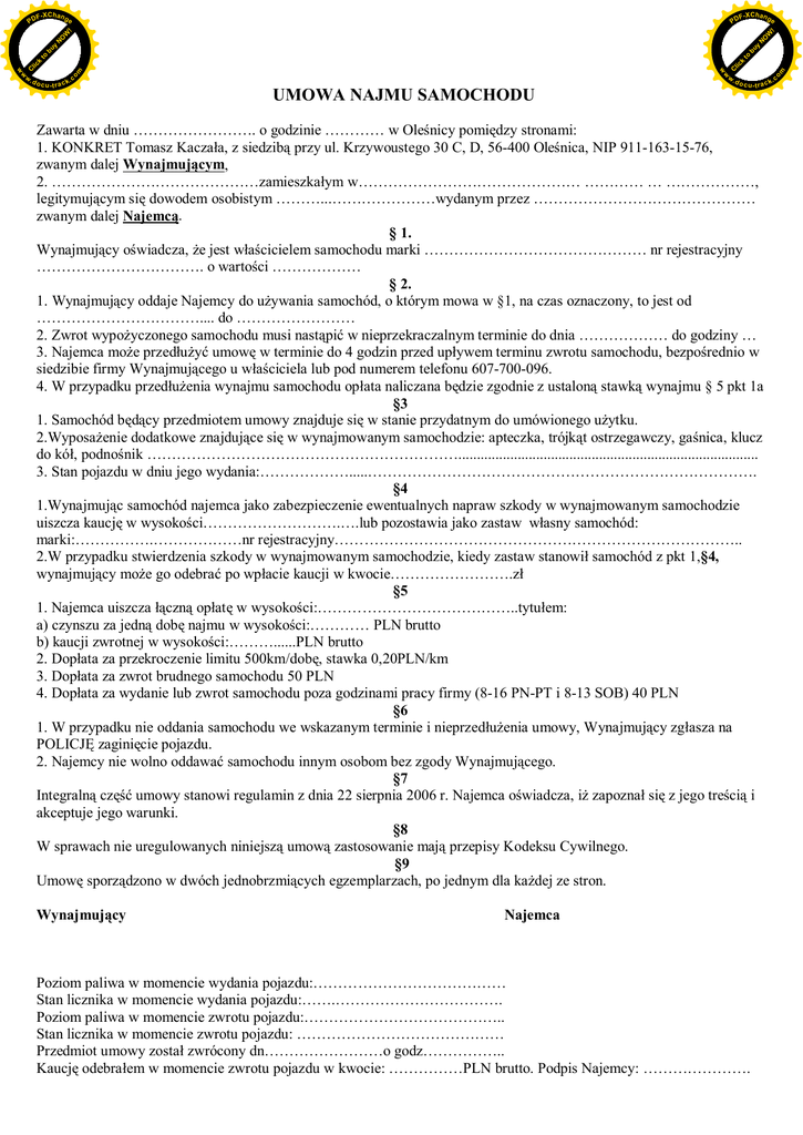 UMOWA NAJMU SAMOCHODU