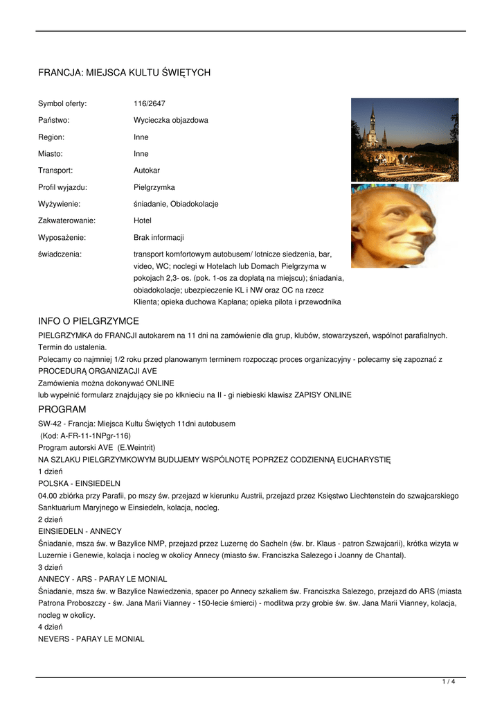 SW-42 - Francja: Miejsca Kultu Świętych 11dni autobusem