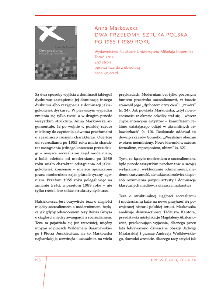 Anna Markowska dwA przełoMy. sztukA polskA po 1955 i 1989 roku