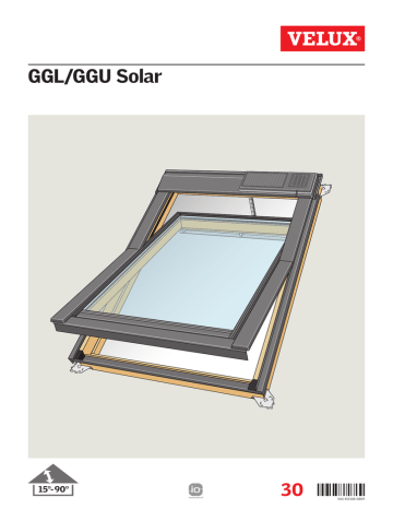 GGL/GGU Solar 15°-90° 30 VAS 452108-0809 GGL/GGU E- - BFX BDX BBX 185–220 cm LS - - 2 VELUX english: Important information Read instructions carefully before installing and operating. Please keep instructions for future reference and hand them over to any new user. Safety •The product must not be put into operation until it has been fitted according to the instructions. •Before operating ensure that the window can be and is operated without risk of damage to property or injury to people or animals. •Prevent the window from opening or closing suddenly and uncontrollably during installation. •The window does not meet requirements for emergency escape. •If flashing is not to be installed immediately, fit the covers supplied with the window. Product • The product is compatible with products with the io-homecontrol® logo. • The window may be manually operated. • Electrical products must be disposed of in conformity with national regulations for electronic waste and not with household waste. • Used batteries have to be disposed of in conformity with the relevant environmental regulations. • Expected battery lifetime of the solar window operator: Approx 10 years. • The packaging can be disposed of with usual household waste. • Noise level: Max 70 dB(A). • Protection degree: IP 44. • If you have any technical questions, please contact VELUX. io-homecontrol® provides advanced and secure radio technology that is easy to install. io-homecontrol® labelled products communicate with each other, improving comfort, security and energy savings. franÇais : Information importante Lire attentivement la totalité de la notice avant l'installation et l'utilisation. Conserver cette notice pour vous y référer en cas de besoin et ne pas oublier de la transmettre à tout nouvel utilisateur. Sécurité •Le produit ne doit être mis en fonction qu'après l'avoir installé suivant les indications de sa propre notice. •Avant de manœuvrer la fenêtre, s'assurer que celle-ci peut-être actionnée sans risque de dommages matériels ou de blessures pour une personne ou un animal. •Faire en sorte que la fenêtre ne s'ouvre ni ne se ferme soudainement et sans contrôle pendant l'installation. •La fenêtre n'est pas prévue pour servir d'issue de secours. •Si le raccordement d'étanchéité n'est pas immédiatement installé, monter les profilés de recouvrement fournis avec la fenêtre. Produit •Ce produit est compatible avec des produits portant le logo io-homecontrol®. •La fenêtre peut être manœuvrée manuellement. •Les produits électriques/électroniques doivent être mis en décharge conformément à la réglementation sur les déchets électroniques en vigueur et ne doivent en aucun cas être jetés aux ordures ménagères. •Les piles usagées doivent être déposées dans un endroit approprié conformément à la réglementation sur l'environnement en vigueur. •Durée de vie estimée des batteries du moteur de la fenêtre solaire : environ 10 ans. •L'emballage peut être jeté aux ordures ménagères. •Niveau sonore : maximum 70 dB(A). •Classe de protection : IP 44. •Pour toutes questions techniques, contacter VELUX. www.io-homecontrol.com io-homecontrol® repose sur une technologie avancée, sécurisée et sans-fil, facile à installer. Les produits io-homecontrol® communiquent entre eux pour offrir plus de confort, de sécurité et d'économies d'énergie. www.io-homecontrol.com deutsch: Wichtige Informationen Vor Montagebeginn und Gebrauch bitte sorgfältig die gesamte Anleitung lesen. Bitte bewahren Sie die Anleitung für den späteren Gebrauch auf und geben Sie diese an den jeweiligen neuen Benutzer weiter. Sicherheit •Das Produkt darf erst dann in Betrieb genommen werden, wenn es nach den Anleitungen eingebaut ist. •Die Bedienung des Fensters sollte nur dann erfolgen, wenn der Benutzer sich vergewissert hat, dass das Fenster ohne Risiko für Personen, Tiere oder Gegenstände bedient werden kann. •Ein plötzliches, unkontrolliertes Öffnen oder Schließen des Fensters während der Montage vermeiden. •Dieses Fenster erfüllt nicht die Anforderungen an Notausstiege. •Falls der Eindeckrahmen nicht sofort montiert wird, sind die mitgelieferten Abdeckbleche anzubringen. Produkt •Das Produkt ist mit Produkten mit dem io-homecontrol® Logo kompatibel. •Das Fenster kann manuell bedient werden. •Elektrische Produkte sind nach nationalen Bestimmungen als elektronischer Müll zu entsorgen und dürfen nicht in den Hausmüll gelangen. •Gebrauchte Batterien müssen nach den entsprechenden umweltrechtlichen Bestimmungen entsorgt werden. •Erwartete Akkulebensdauer des Solarzellen-Fenstermotors: Ca. 10 Jahre. •Die Verpackung kann mit dem Hausmüll entsorgt werden. •Geräuschentwicklung: Max. 70 dB(A). •Schutzart: IP 44. •Bei eventuellen Fragen wenden Sie sich bitte an VELUX. io-homecontrol® bietet eine fortschrittliche und sichere Radio-Funktechnologie, die einfach zu installieren ist. io-homecontrol® gekennzeichnete Produkte kommunizieren miteinander und verbessern somit Komfort, Sicherheit und Energieeinsparung. www.io-homecontrol.com dansk: Vigtig information Læs hele vejledningen grundigt igennem før montering og ibrugtagning. Vejledningen bør opbevares til senere brug og gives videre til en evt. ny bruger. Sikkerhed •Produktet må først tages i brug, når det er monteret ifølge vejledningerne. •Vinduet bør kun betjenes, når brugeren har sikret sig, at dette kan ske uden risiko for personer, dyr eller genstande. •Undgå, at vinduet pludselig åbner eller lukker ukontrolleret under montering. •Vinduet opfylder ikke forskrifter for nødudgang. •Såfremt inddækning ikke monteres med det samme, skrues de medleverede beklædningsdele på. Produkt •Produktet er kompatibelt med produkter med io-homecontrol® logoet. •Vinduet kan betjenes manuelt. •Elektriske produkter må ikke smides ud med husholdningsaffa