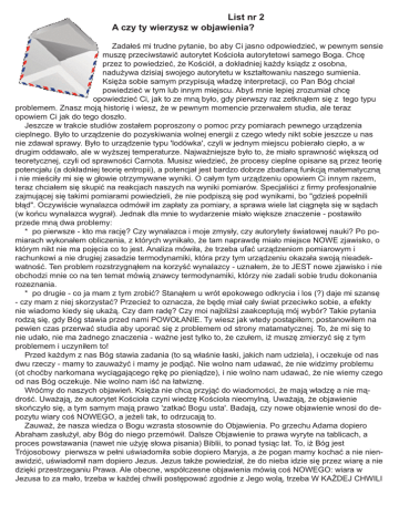 List nr 2 A czy ty wierzysz w objawienia? Zadałeś mi trudne pytanie, bo aby Ci jasno odpowiedzieć, w pewnym sensie muszę przeciwstawić autorytet Kościoła autorytetowi samego Boga. Chcę przez to powiedzieć, że Kościół, a dokładniej każdy ksiądz z osobna, nadużywa dzisiaj swojego autorytetu w kształtowaniu naszego sumienia. Księża sobie samym przypisują władzę interpretacji, co Pan Bóg chciał powiedzieć w tym lub innym miejscu. Abyś mnie lepiej zrozumiał chcę opowiedzieć Ci, jak to ze mną było, gdy pierwszy raz zetknąłem się z tego typu problemem. Znasz moją historię i wiesz, że w pewnym momencie przerwałem studia, ale teraz opowiem Ci jak do tego doszło. Jeszcze w trakcie studiów zostałem poproszony o pomoc przy pomiarach pewnego urządzenia cieplnego. Było to urządzenie do pozyskiwania wolnej energii z czego wtedy nikt sobie jeszcze u nas nie zdawał sprawy. Było to urządzenie typu 'lodówka', czyli w jednym miejscu pobierało ciepło, a w drugim oddawało, ale w wyższej temperaturze. Najważniejsze było to, że miało sprawność większą od teoretycznej, czyli od sprawności Carnota. Musisz wiedzieć, że procesy cieplne opisane są przez teorię potencjału (a dokładniej teorię entropii), a potencjał jest bardzo dobrze zbadaną funkcją matematyczną i nie mieściły mi się w głowie otrzymywane wyniki. O całym tym urządzeniu opowiem Ci innym razem, teraz chciałem się skupić na reakcjach naszych na wyniki pomiarów. Specjaliści z firmy profesjonalnie zajmującej się takimi pomiarami powiedzieli, że nie podpiszą się pod wynikami, bo "gdzieś popełnili błąd". Oczywiście wynalazca odmówił im zapłaty za pomiary, a sprawa wiele lat ciągnęła się w sądach (w końcu wynalazca wygrał). Jednak dla mnie to wydarzenie miało większe znaczenie - postawiło przede mną dwa problemy: * po pierwsze - kto ma rację? Czy wynalazca i moje zmysły, czy autorytety światowej nauki? Po pomiarach wykonałem obliczenia, z których wynikało, że tam naprawdę miało miejsce NOWE zjawisko, o którym nikt nie ma pojęcia co to jest. Analiza mówiła, że trzeba ufać urządzeniom pomiarowym i rachunkowi a nie drugiej zasadzie termodynamiki, która przy tym urządzeniu okazała swoją nieadekwatność. Ten problem rozstrzygnąłem na korzyść wynalazcy - uznałem, że to JEST nowe zjawisko i nie obchodzi mnie co na ten temat mówią znawcy termodynamiki, którzy nie zadali sobie trudu dokonania rozeznania. * po drugie - co ja mam z tym zrobić? Stanąłem u wrót epokowego odkrycia i los (?) daje mi szansę - czy mam z niej skorzystać? Przecież to oznacza, że będę miał cały świat przeciwko sobie, a efekty nie wiadomo kiedy się ukażą. Czy dam radę? Czy moi najbliżsi zaakceptują mój wybór? Takie pytania rodzą się, gdy Bóg stawia przed nami POWOŁANIE. Ty wiesz jak wtedy postąpiłem; postanowiłem na pewien czas przerwać studia aby uporać się z problemem od strony matamatycznej. To, że mi się to nie udało, nie ma żadnego znaczenia - ważne jest tylko to, że czułem, iż muszę zmierzyć się z tym problemem i uczyniłem to! Przed każdym z nas Bóg stawia zadania (to są właśnie łaski, jakich nam udziela), i oczekuje od nas dwu rzeczy - mamy to zauważyć i mamy je podjąć. Nie wolno nam udawać, że nie widzimy problemu (ot choćby narkomana wyciągającego rękę po pieniądze), i nie wolno nam udawać, że nie wiemy czego od nas Bóg oczekuje. Nie wolno nam iść na łatwiznę. Wróćmy do naszych objawień. Księża nie chcą przyjąć do wiadomości, że mają władzę a nie mądrość. Uważają, że autorytet Kościoła czyni wiedzę Kościoła nieomylną. Uważają, że objawienie skończyło się, a tym samym mają prawo 'zatkać Bogu usta'. Badają, czy nowe objawienie wnosi do depozytu wiary coś NOWEGO, a jeżeli tak, to odrzucają to. Zauważ, że nasza wiedza o Bogu wzrasta stosownie do Objawienia. Po grzechu Adama dopiero Abraham zasłużył, aby Bóg do niego przemówił. Dalsze Objawienie to prawa wyryte na tablicach, a proces powstawania (nawet nie użyję słowa pisania) Biblii, to ponad tysiąc lat. To, iż Bóg jest Trójosobowy pierwsza w pełni uświadomiła sobie dopiero Maryja, a że pogan mamy kochać a nie nienawidzić, uświadomił nam dopiero Jezus. Jezus także powiedział, że do nieba idzie się przez wiarę a nie dzięki przestrzeganiu Prawa. Ale obecne, współczesne objawienia mówią coś NOWEGO: wiara w Jezusa to za mało, trzeba w każdej chwili postępować zgodnie z Jego wolą, trzeba W KAŻDEJ CHWILI słuchać głosu Boga w sercu, a nie wtedy, gdy nam coś sumienie wyrzuca. A kapłani mówią: nie musicie słuchać objawień - nawet gdy są prawdziwe (!!!). Wystarczy, że słuchacie nas. My strzeżemy depozytu wiary, nasz głos jest głosem waszego sumienia, a jeżeli wasze sumienie mówi wam coś innego, to znaczy, że zostało źle uformowane. Amen. Moim zdaniem (podkreślam to, aby odróżnić od oficjalnego stanowiska Kościoła) mamy moralny obowiązek czytania objawień. To tak jak czytać listy od Ojca. Tylko za każdym razem musimy zadać sobie dwa pytania: czy to jest prawdziwy list od Ojca i czy jest on skierowany do mnie? Każdy z nas ma w swym sercu wyrytą drogę do Ojca, ale nie da się jej odkryć inaczej, jak z chwili na chwilę wsłuchiwać się w głos serca, głos sumienia, Głos Boga.